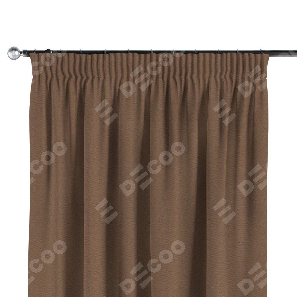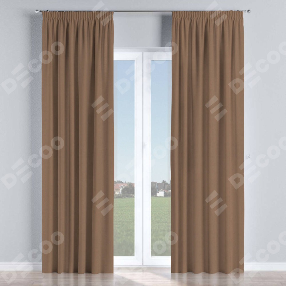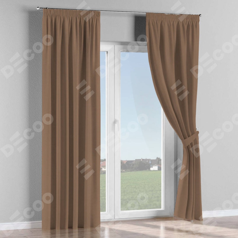 Комплект прямых штор, от производителя «Cortin», пошиты из ткани блэкаут однотонный коричневый, артикул ткани 88285. С изнаночной стороны в верхней части штор пристрачивается шторная лента с декоративными складками «Карандаш». Для создания элегантных складок прямые шторы шьются по стандарту с коэффициентом 1:2 (на 100 см. ширины проёма 200 см. ширины ткани).
