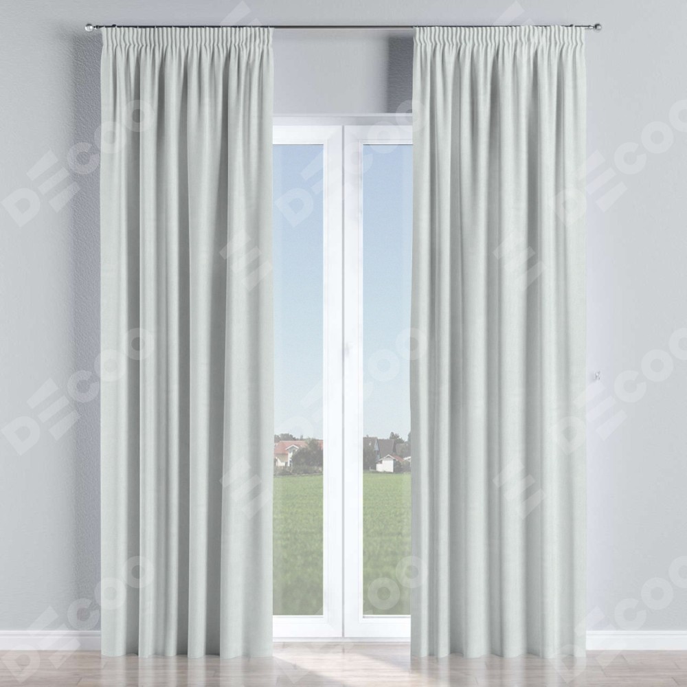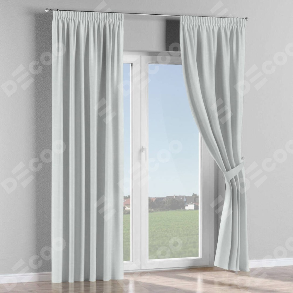 Комплект прямых штор, от производителя «Cortin», пошиты из ткани блэкаут однотонный дымчато-молочный, артикул ткани 88282. С изнаночной стороны в верхней части штор пристрачивается шторная лента с декоративными складками «Карандаш». Для создания элегантных складок прямые шторы шьются по стандарту с коэффициентом 1:2 (на 100 см. ширины проёма 200 см. ширины ткани).