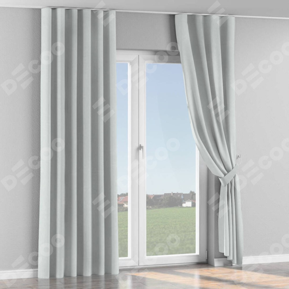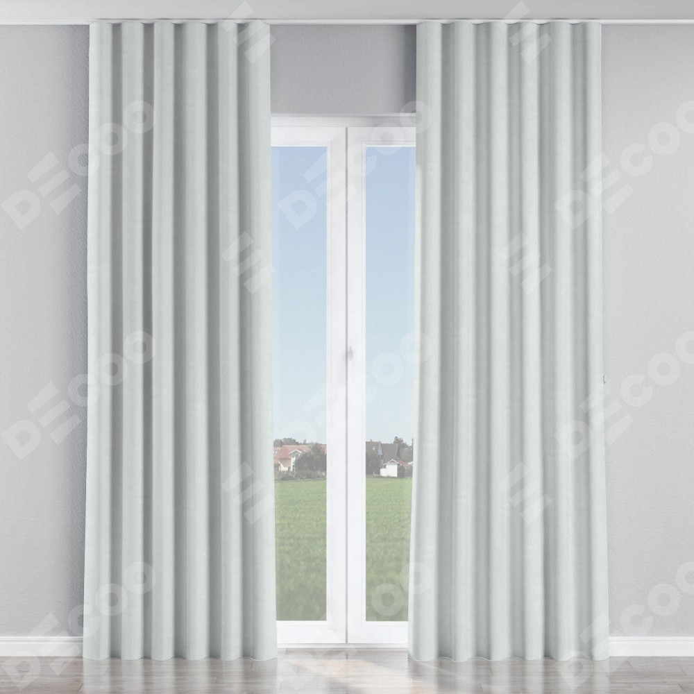 Комплект прямых штор, от производителя «Cortin», пошиты из ткани блэкаут однотонный дымчато-молочный, артикул ткани 88282. С изнаночной стороны в верхней части штор пристрачивается шторная лента с декоративными складками «Волна». Для создания элегантных складок прямые шторы шьются по стандарту с коэффициентом 1:2 (на 100 см. ширины проёма 200 см. ширины ткани).