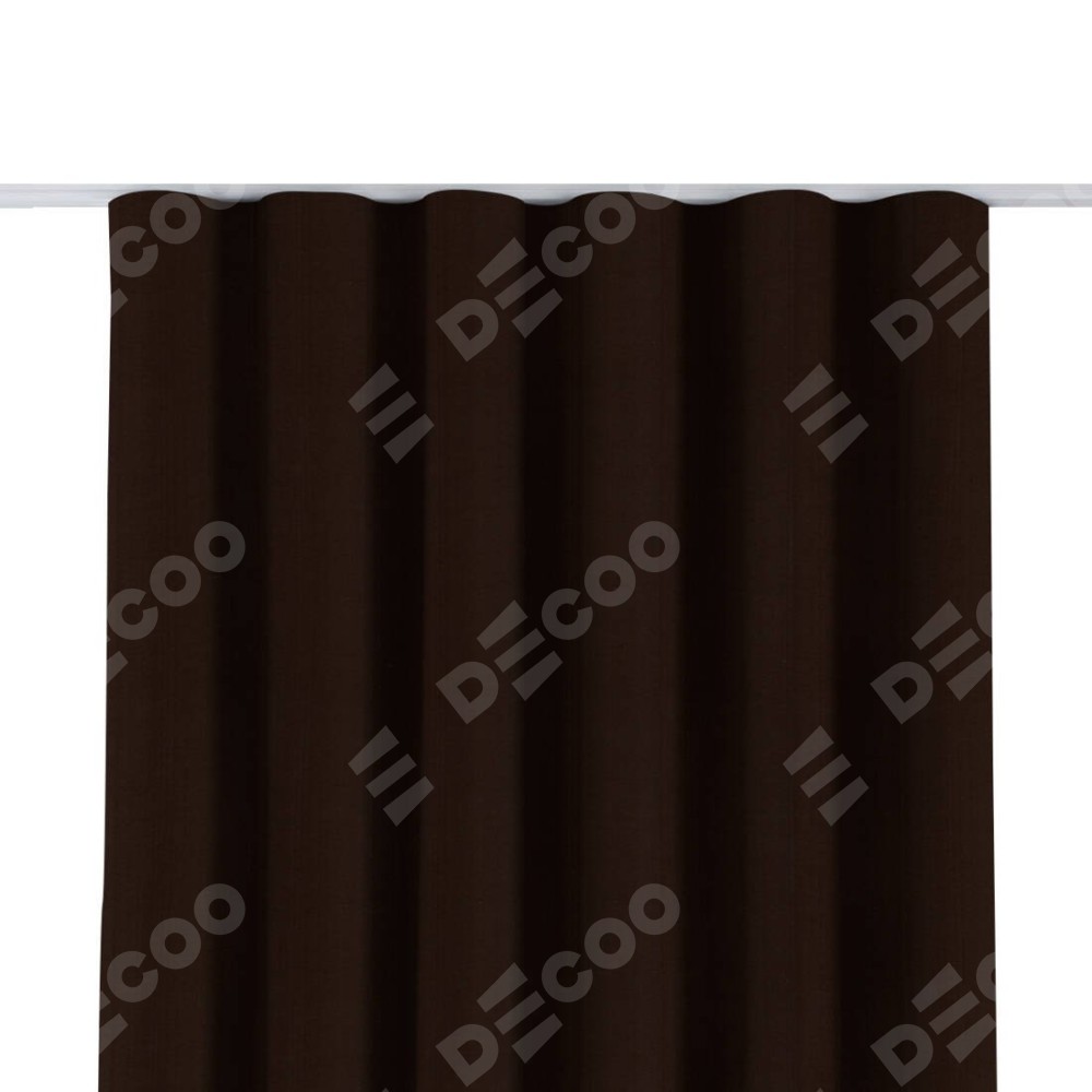 Комплект прямых штор, от производителя «Cortin», пошиты из ткани блэкаут однотонный тёмно-коричневый, артикул ткани 88287. С изнаночной стороны в верхней части штор пристрачивается шторная лента с декоративными складками «Волна». Для создания элегантных складок прямые шторы шьются по стандарту с коэффициентом 1:2 (на 100 см. ширины проёма 200 см. ширины ткани).