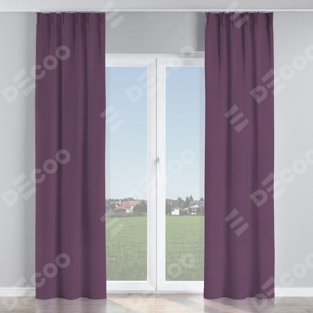 Комплект прямых штор, от производителя «Cortin», пошиты из ткани блэкаут однотонный фуксия, артикул ткани 88303. С изнаночной стороны в верхней части штор пристрачивается шторная лента с декоративными складками «Кустик». Для создания элегантных складок прямые шторы шьются по стандарту с коэффициентом 1:2 (на 100 см. ширины проёма 200 см. ширины ткани).