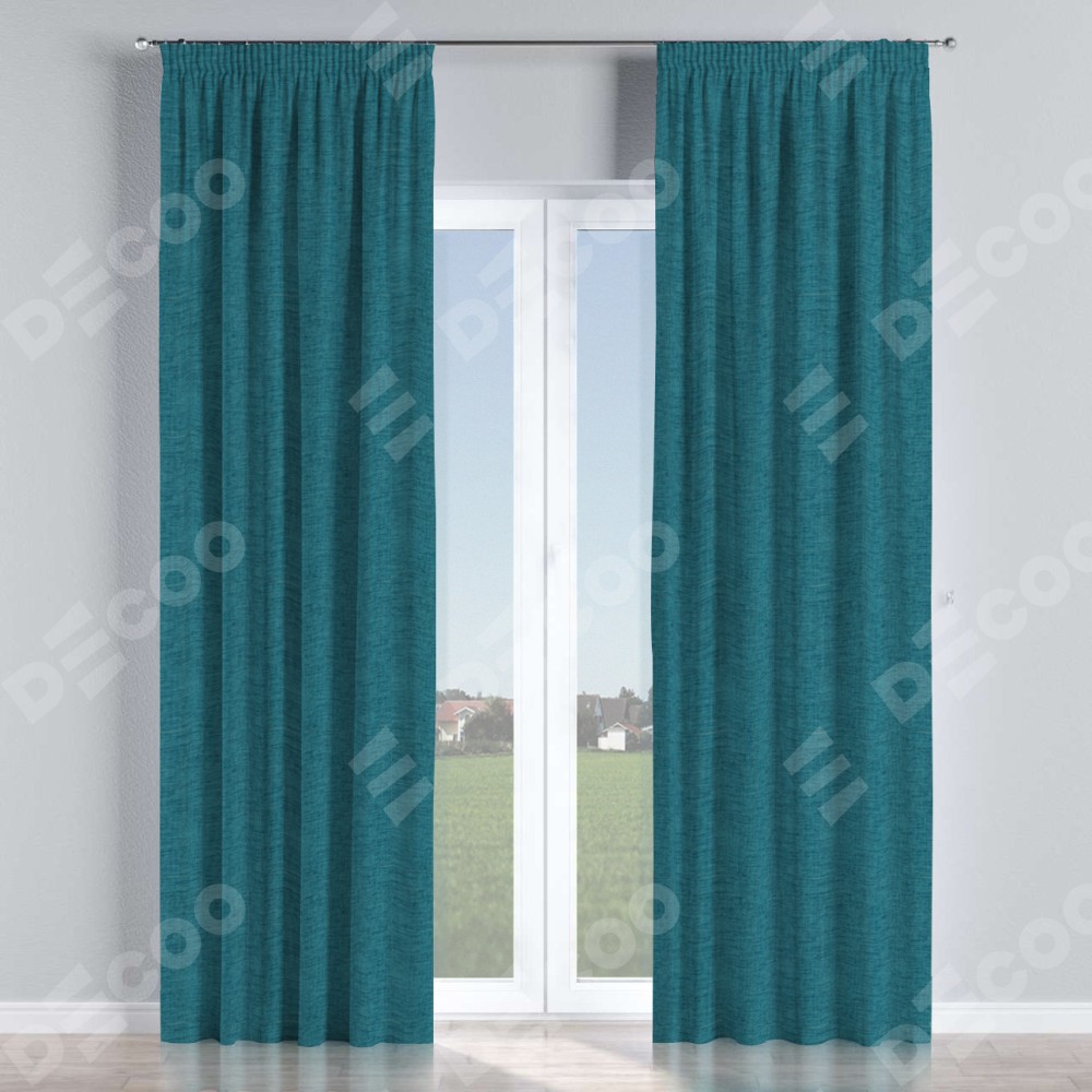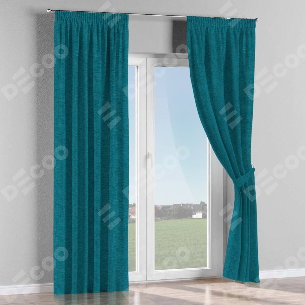Комплект прямых штор, от производителя «Cortin», пошиты из ткани рогожка димаут синий, артикул ткани 80422. С изнаночной стороны в верхней части штор пристрачивается шторная лента с декоративными складками «Карандаш». Для создания элегантных складок прямые шторы шьются по стандарту с коэффициентом 1:2 (на 100 см. ширины проёма 200 см. ширины ткани).