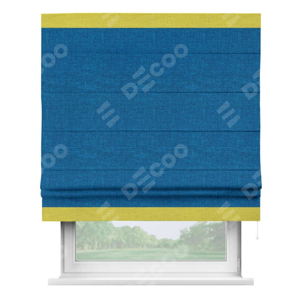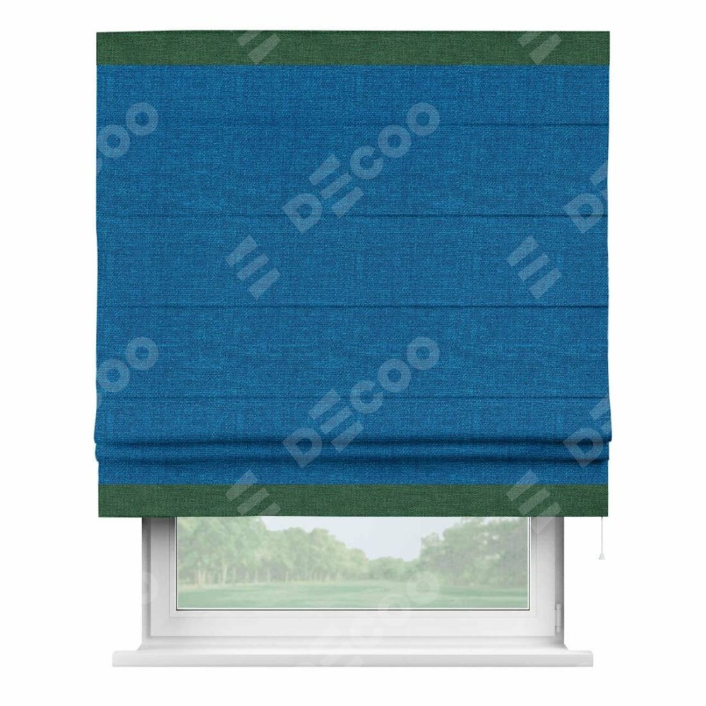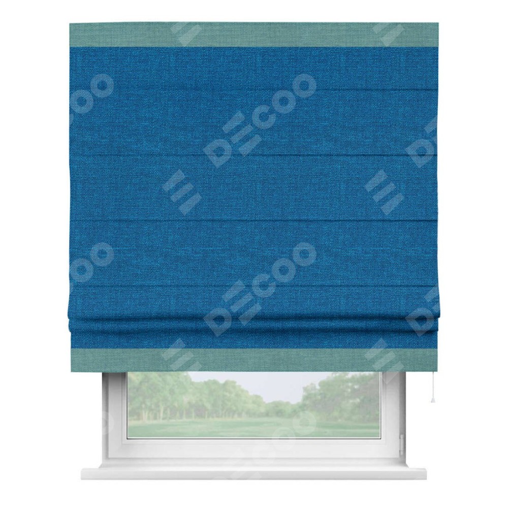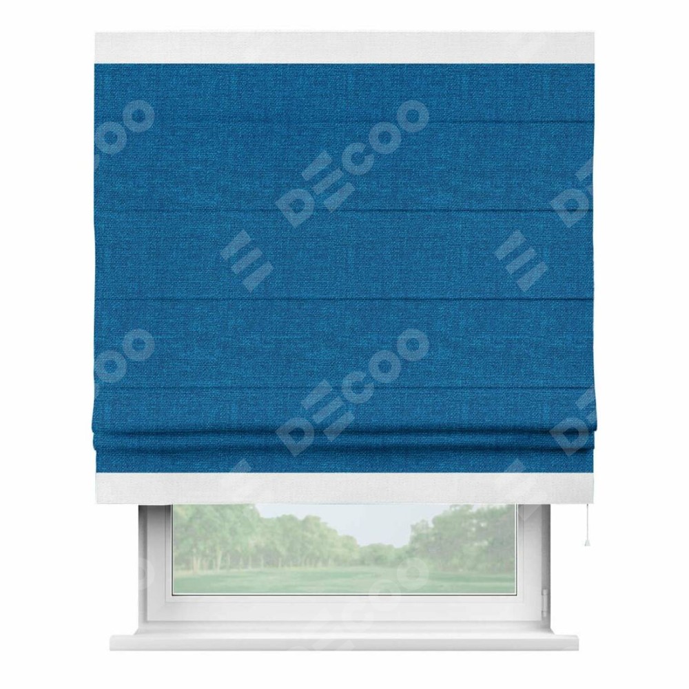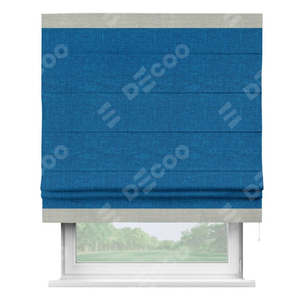 Римская штора «Кортин» с кантом Горизонт, для проема, ткань лён синий