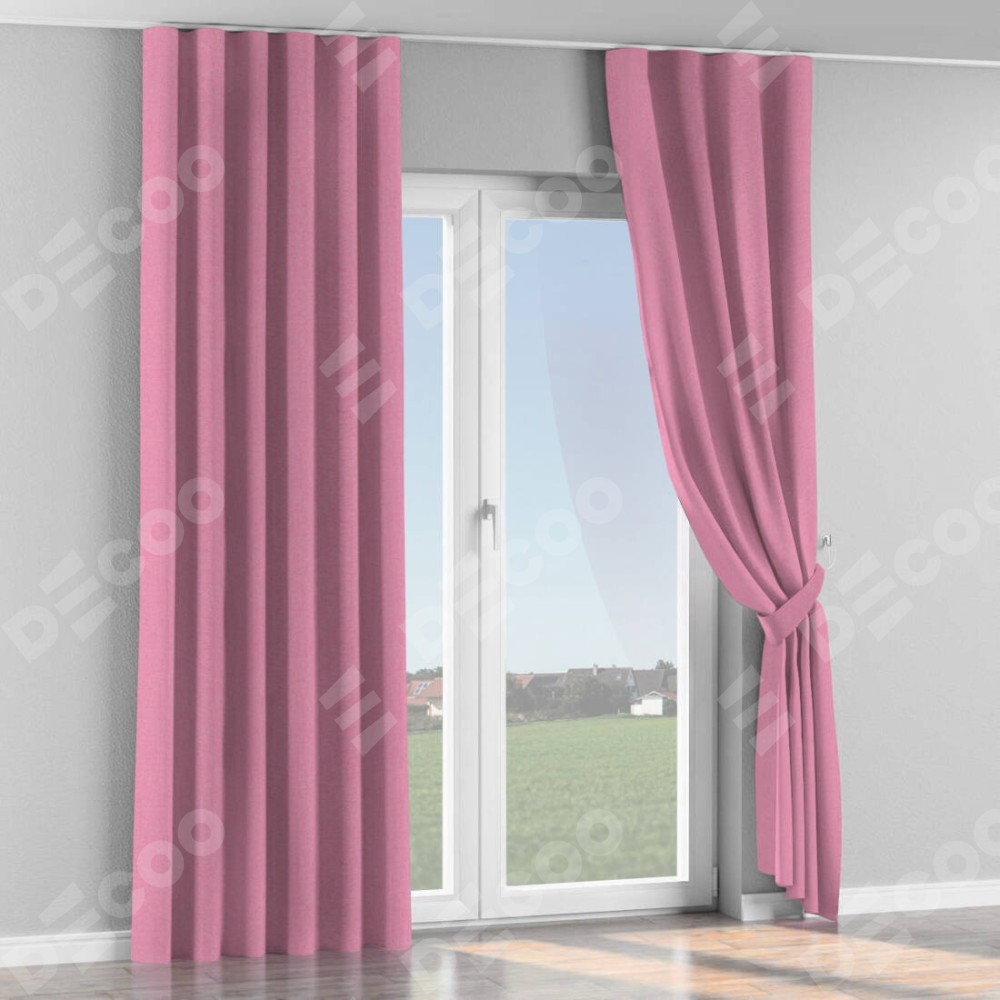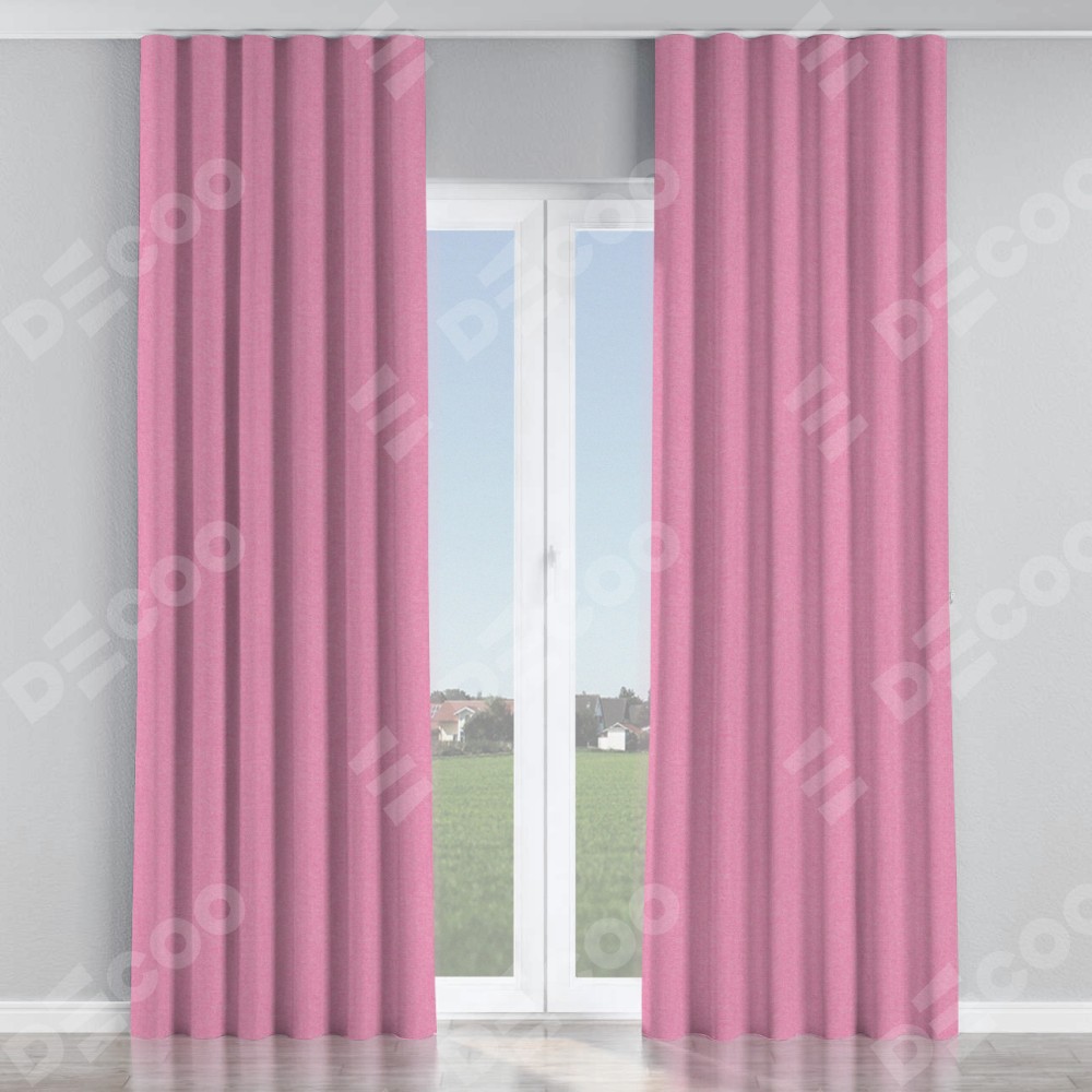 Комплект прямых штор, от производителя «Cortin», пошиты из ткани лён димаут розовый, артикул ткани 16257. С изнаночной стороны в верхней части штор пристрачивается шторная лента с декоративными складками «Волна». Для создания элегантных складок прямые шторы шьются по стандарту с коэффициентом 1:2 (на 100 см. ширины проёма 200 см. ширины ткани).