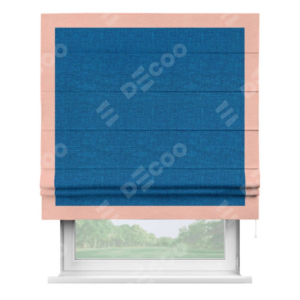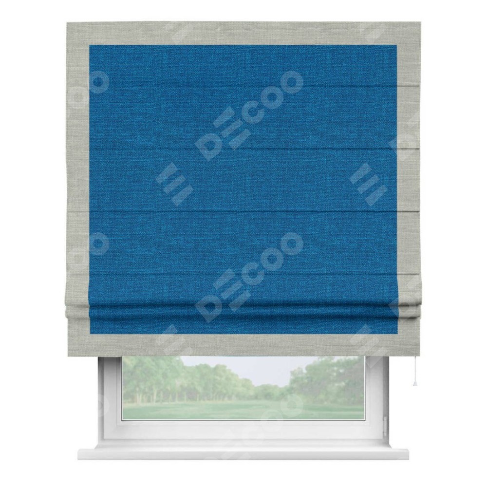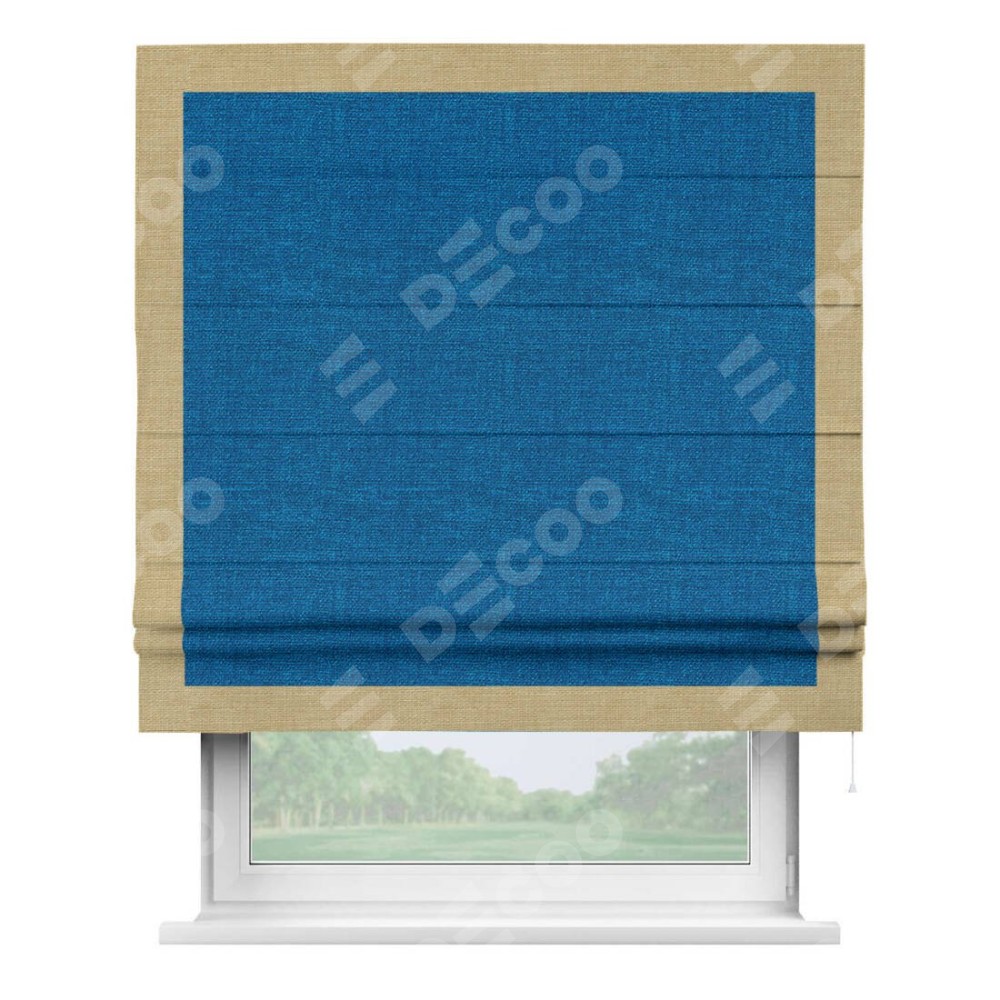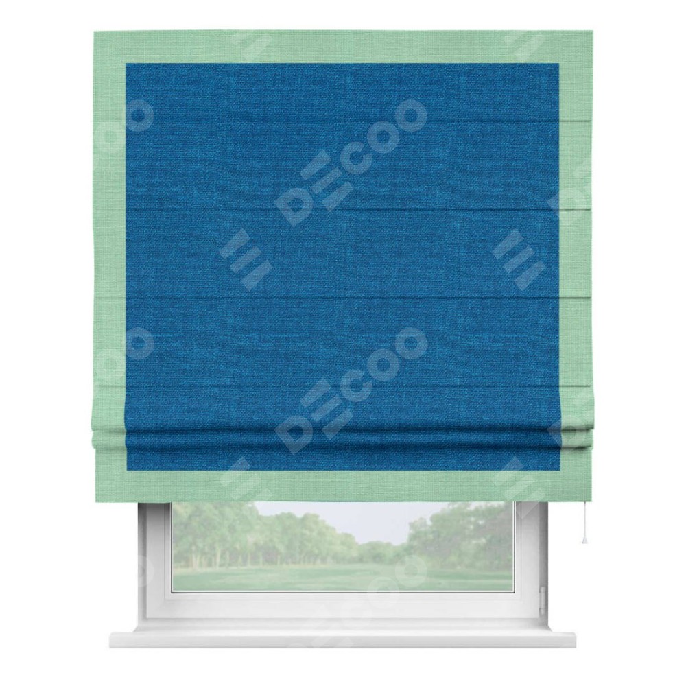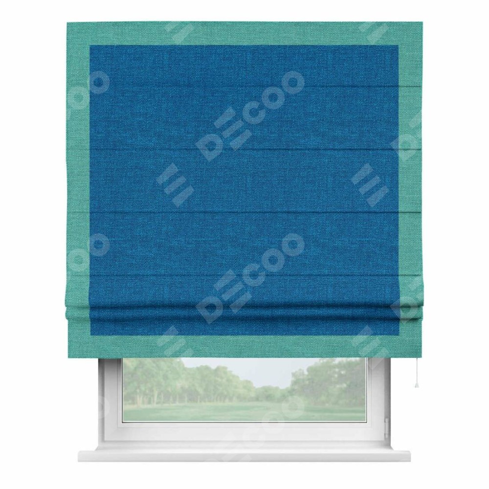 Римская штора «Кортин» с кантом Чесс, для проема, ткань лён синий