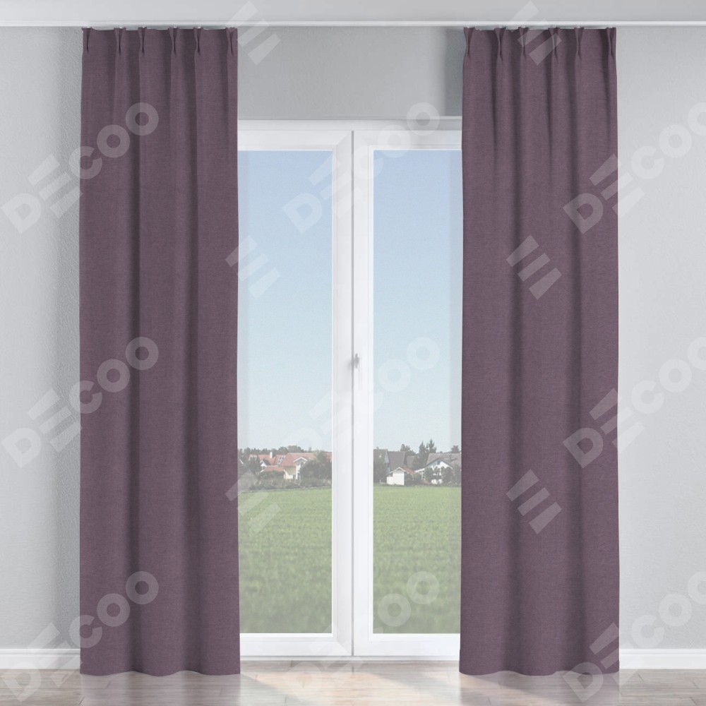 Комплект прямых штор, от производителя «Cortin», пошиты из ткани лён димаут светло-фиолетовый, артикул ткани 83034. С изнаночной стороны в верхней части штор пристрачивается шторная лента с декоративными складками «Кустик». Для создания элегантных складок прямые шторы шьются по стандарту с коэффициентом 1:2 (на 100 см. ширины проёма 200 см. ширины ткани).