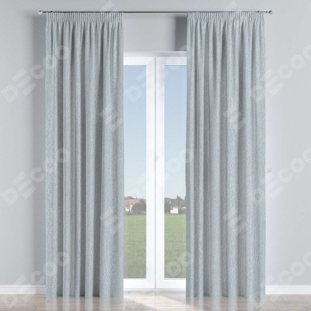 Комплект прямых штор, от производителя «Cortin», пошиты из ткани лён димаут серый, артикул ткани F3. С изнаночной стороны в верхней части штор пристрачивается шторная лента с декоративными складками «Карандаш». Для создания элегантных складок прямые шторы шьются по стандарту с коэффициентом 1:2 (на 100 см. ширины проёма 200 см. ширины ткани).