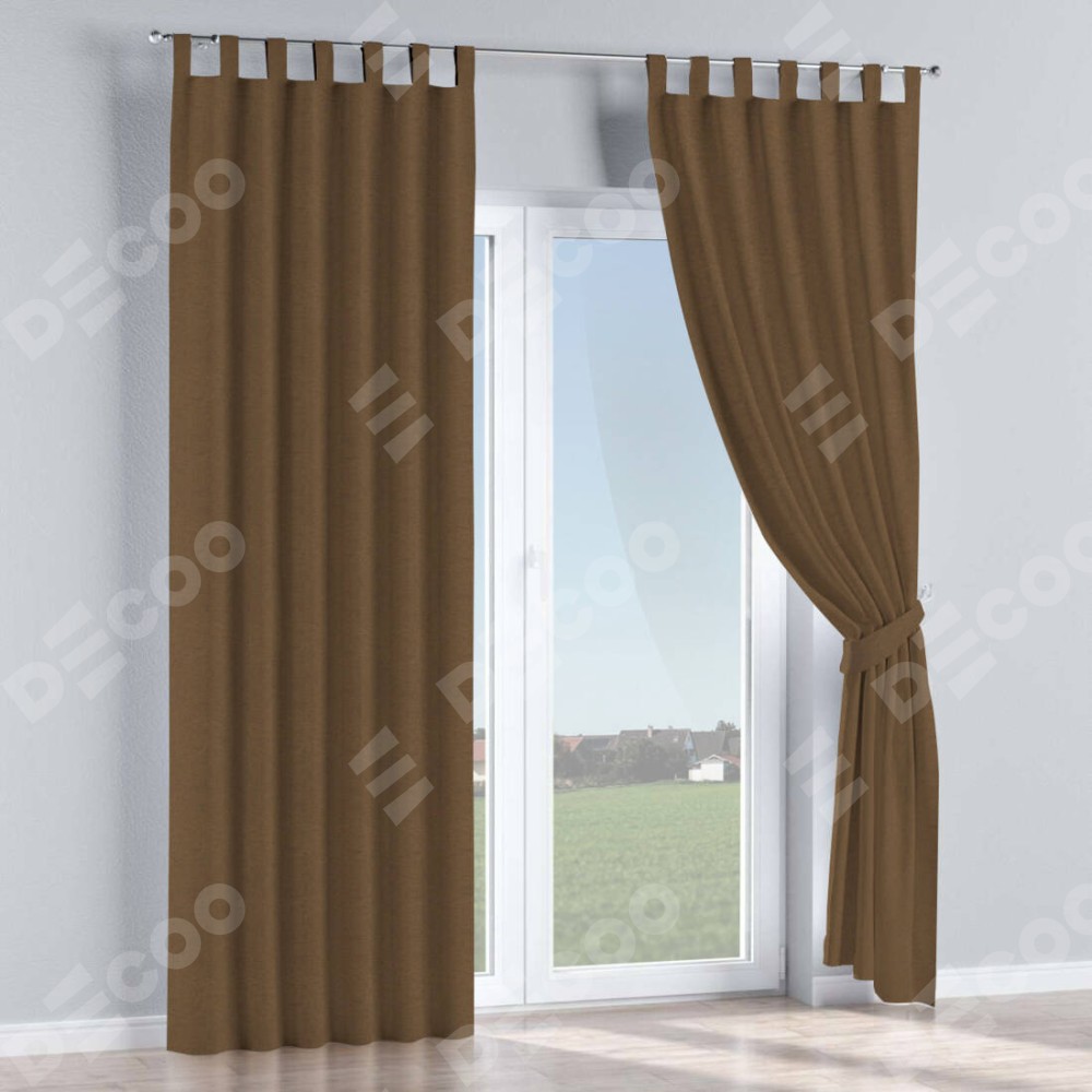 Комплект прямых штор, от производителя «Cortin», пошиты из ткани лён димаут тёмно-коричневый, артикул ткани 83030. Данная модель пошита на петлях, комплектуется на выбор круглым карнизом и подходит для монтажа на стену или потолок. Прямые шторы на петлях шьются по стандарту с коэффициентом 1/2 (на 100 см. ширины проёма 200 см. ширины ткани), отличительным преимуществом данной модели является простой способ монтажа. Достаточно повесить ее на трубу и штора готова!
