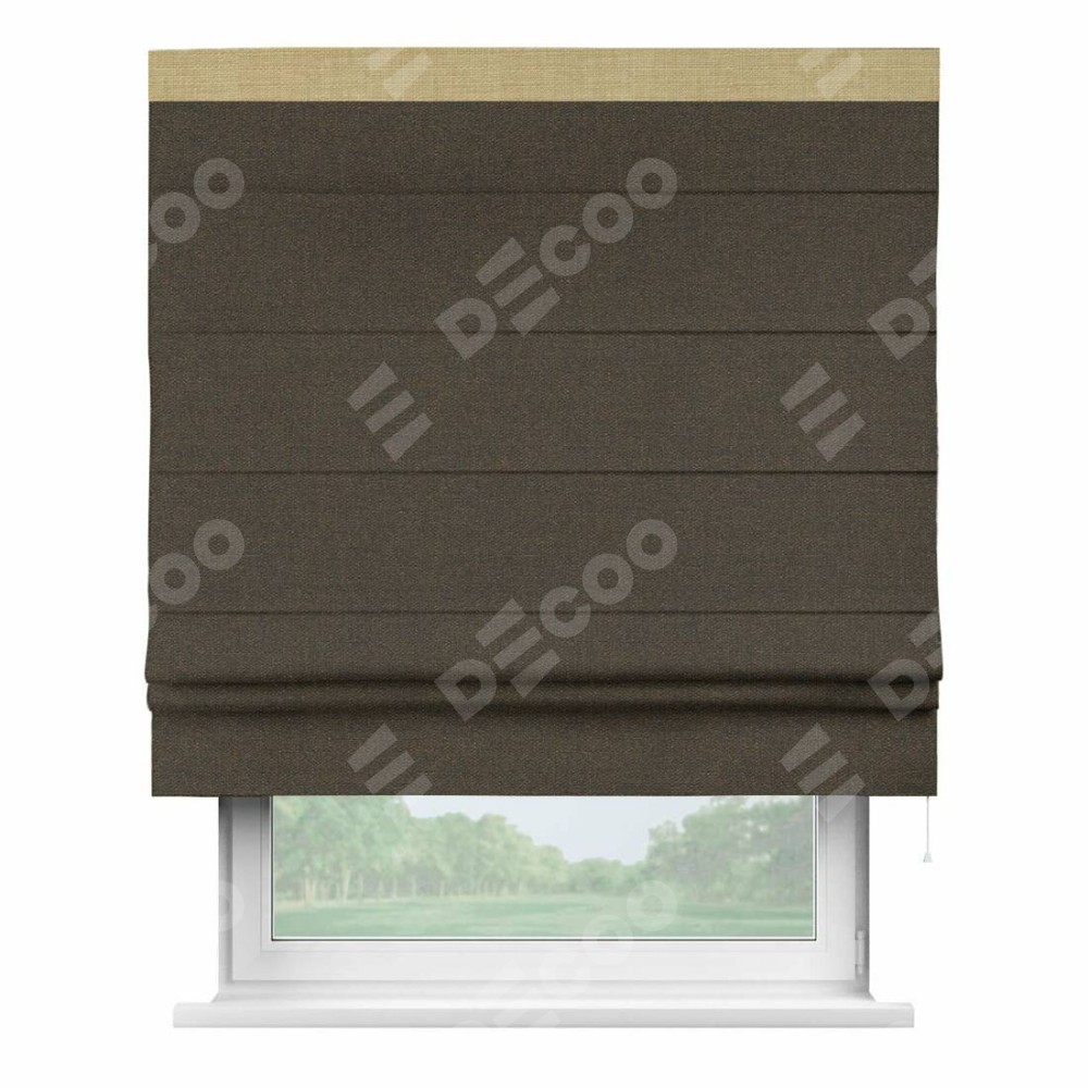 Римская штора «Кортин» с кантом Кинг, для проема, ткань лён темно-коричневый