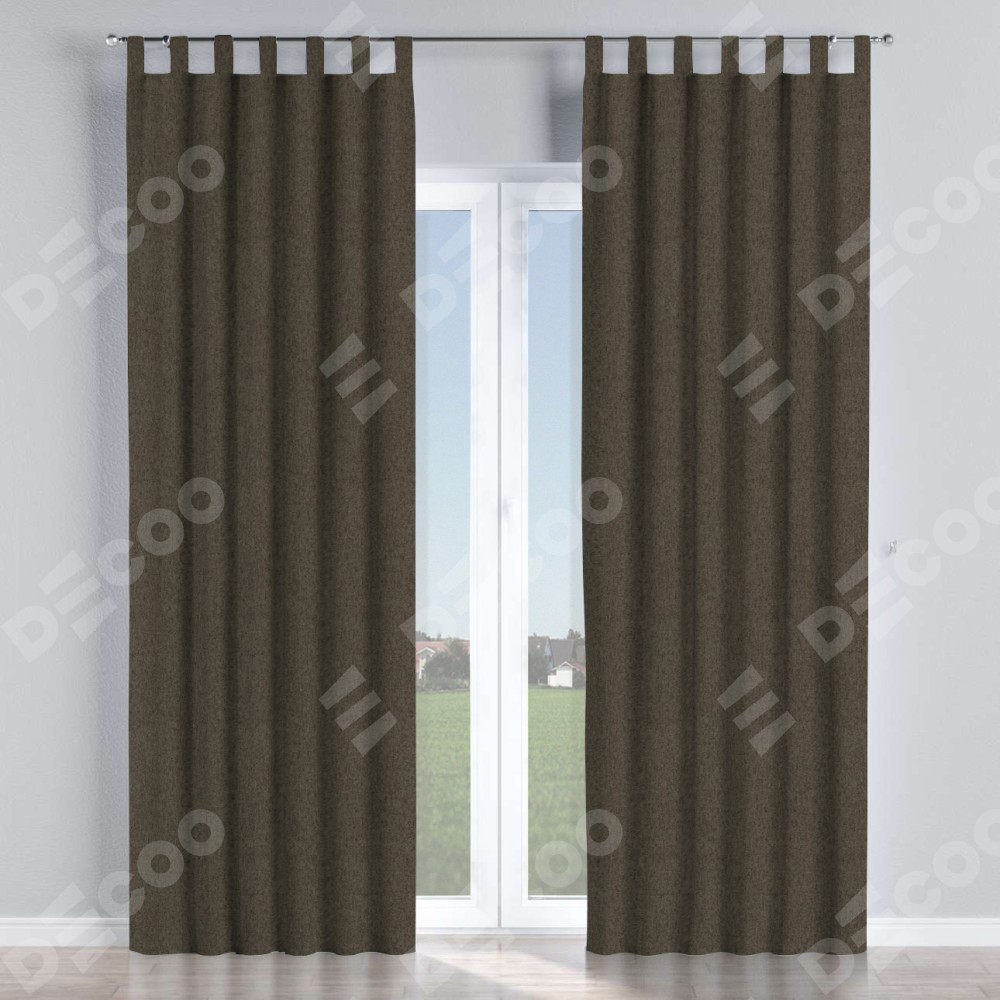 Комплект прямых штор, от производителя «Cortin», пошиты из ткани твид блэкаут тёмно-коричневый, артикул ткани 21584. Данная модель пошита на петлях, комплектуется на выбор круглым карнизом и подходит для монтажа на стену или потолок. Прямые шторы на петлях шьются по стандарту с коэффициентом 1/2 (на 100 см. ширины проёма 200 см. ширины ткани), отличительным преимуществом данной модели является простой способ монтажа. Достаточно повесить ее на трубу и штора готова!