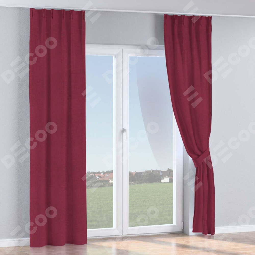 Комплект прямых штор, от производителя «Cortin», пошиты из ткани вельвет бордовый, артикул ткани 85553. С изнаночной стороны в верхней части штор пристрачивается шторная лента с декоративными складками «Кустик». Для создания элегантных складок прямые шторы шьются по стандарту с коэффициентом 1:2 (на 100 см. ширины проёма 200 см. ширины ткани).