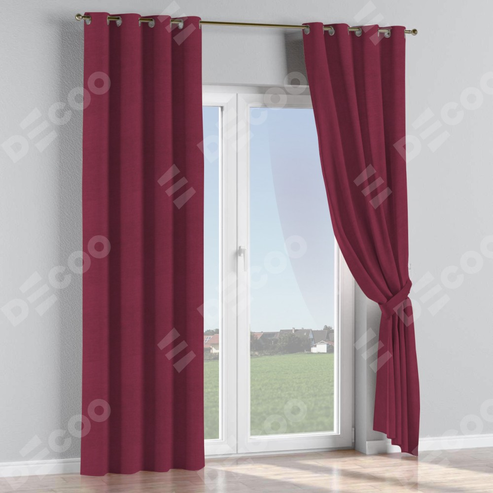Комплект прямых штор, от производителя «Cortin», пошиты из ткани вельвет бордовый, артикул ткани 85553. Данная модель пошита на люверсах, комплектуется на выбор круглым карнизом и подходит для монтажа на стену или потолок. Прямые шторы на люверсах шьются по стандарту с коэффициентом 1/2 (на 100 см. ширины проёма 200 см. ширины ткани), отличительным преимуществом данной модели является простой способ монтажа. Достаточно повесить ее на трубу и штора готова!