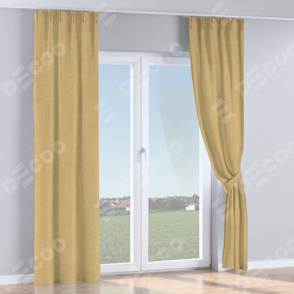Комплект прямых штор, от производителя «Cortin», пошиты из ткани лён бежевый, артикул ткани 7442. С изнаночной стороны в верхней части штор пристрачивается шторная лента с декоративными складками «Кустик». Для создания элегантных складок прямые шторы шьются по стандарту с коэффициентом 1:2 (на 100 см. ширины проёма 200 см. ширины ткани).