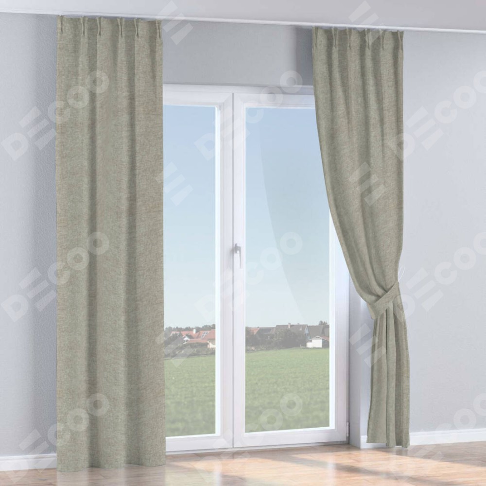 Комплект прямых штор, от производителя «Cortin», пошиты из ткани лён кашемир серый, артикул ткани 17208. С изнаночной стороны в верхней части штор пристрачивается шторная лента с декоративными складками «Кустик». Для создания элегантных складок прямые шторы шьются по стандарту с коэффициентом 1:2 (на 100 см. ширины проёма 200 см. ширины ткани).
