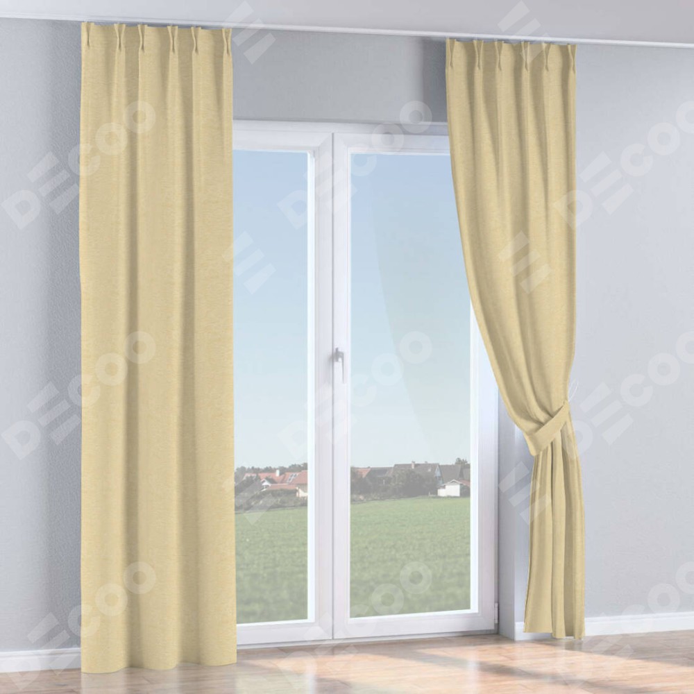 Комплект прямых штор, от производителя «Cortin», пошиты из ткани софт однотонный светло-бежевый, артикул ткани 54426. С изнаночной стороны в верхней части штор пристрачивается шторная лента с декоративными складками «Кустик». Для создания элегантных складок прямые шторы шьются по стандарту с коэффициентом 1:2 (на 100 см. ширины проёма 200 см. ширины ткани).