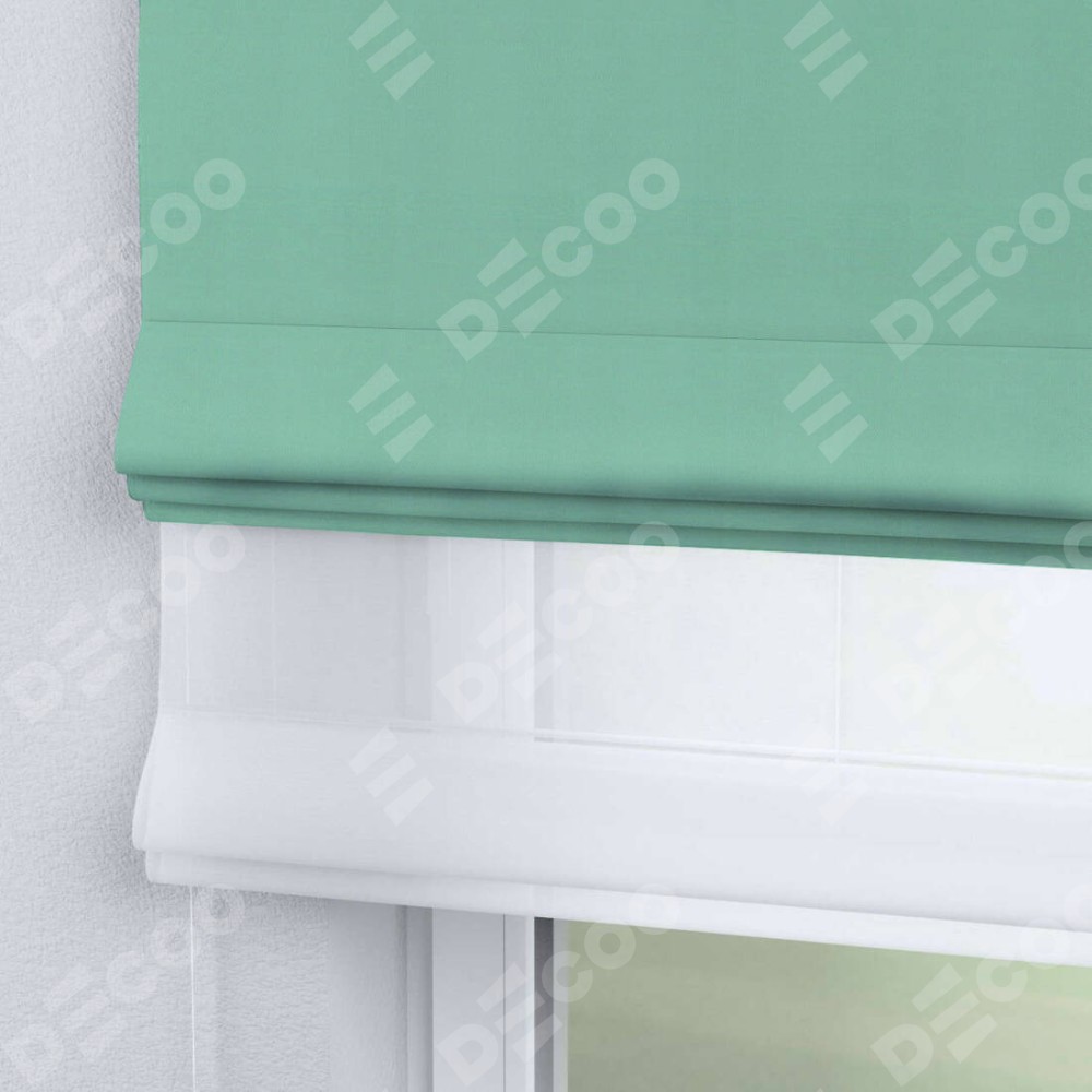 Римская штора день-ночь производителя «Cortin», используется для проёма, пошита из двух полотен, с лицевой стороны pipa блэкаут бирюза артикул 81852, вторая ткань тюль (по стандарту комплектуется тюль белого цвета артикул V-01). Имеет универсальный механизм и подходит для монтажа: на потолок, на стену и в нишу.