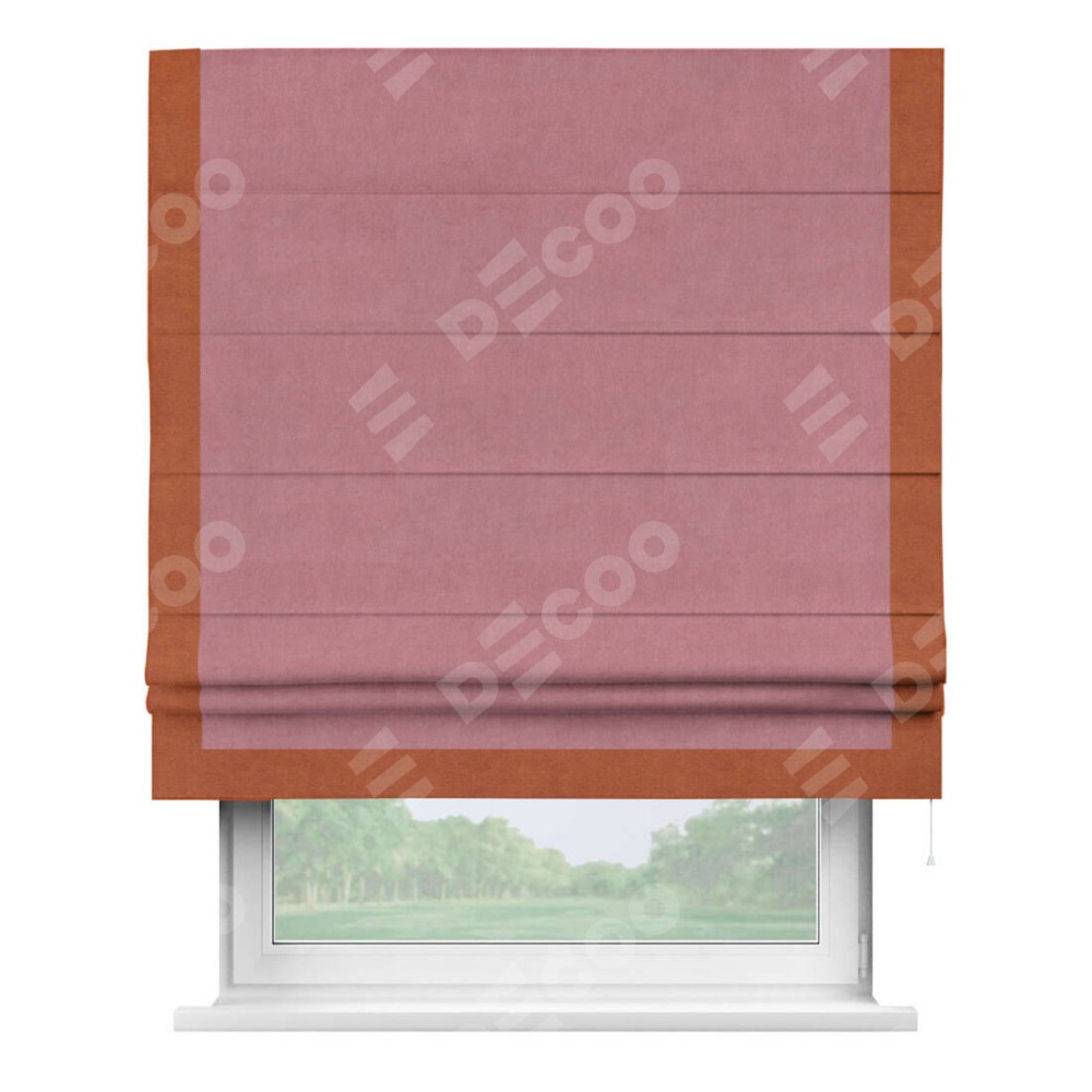 Римская штора «Кортин» с кантом Виктория, для проема, ткань вельвет брусника