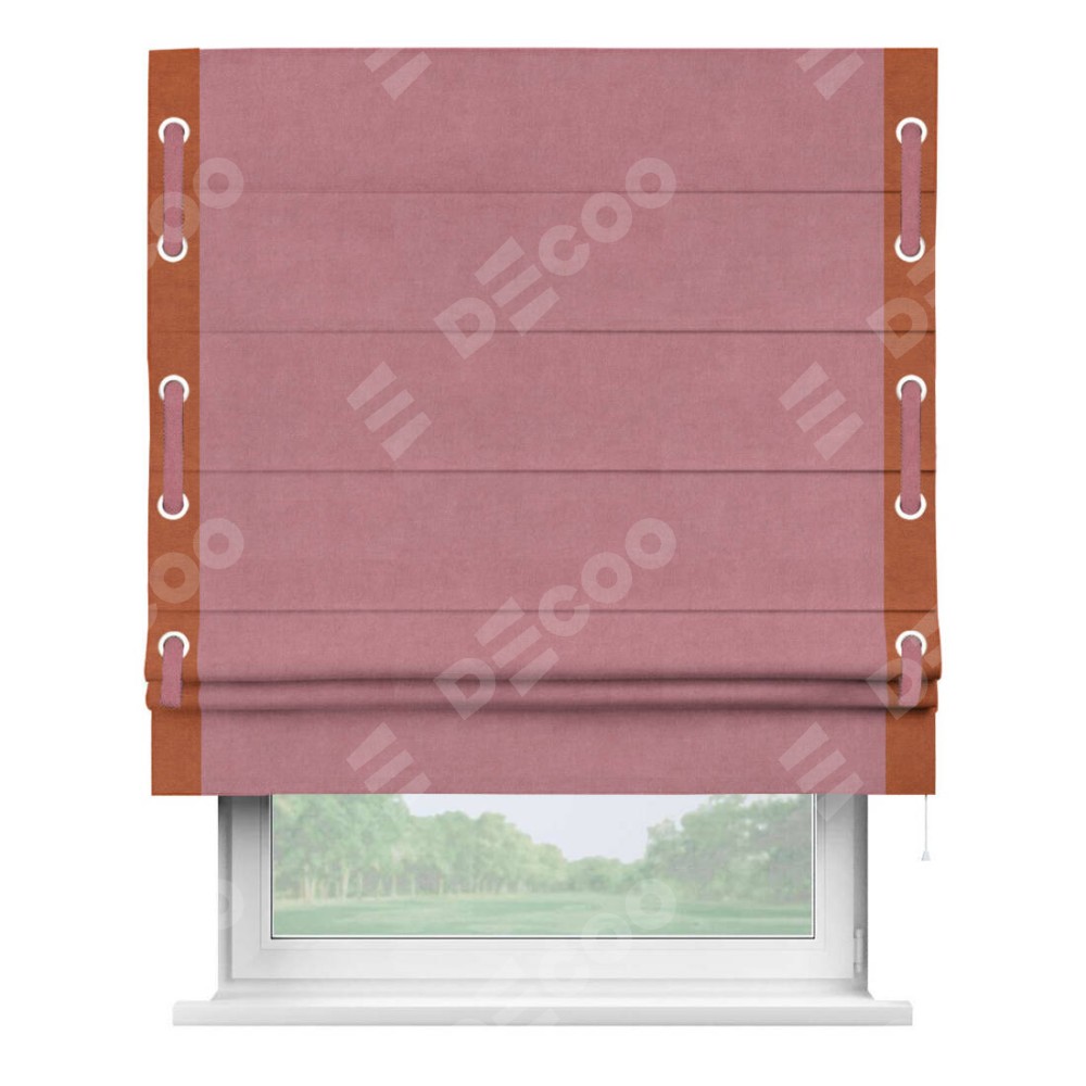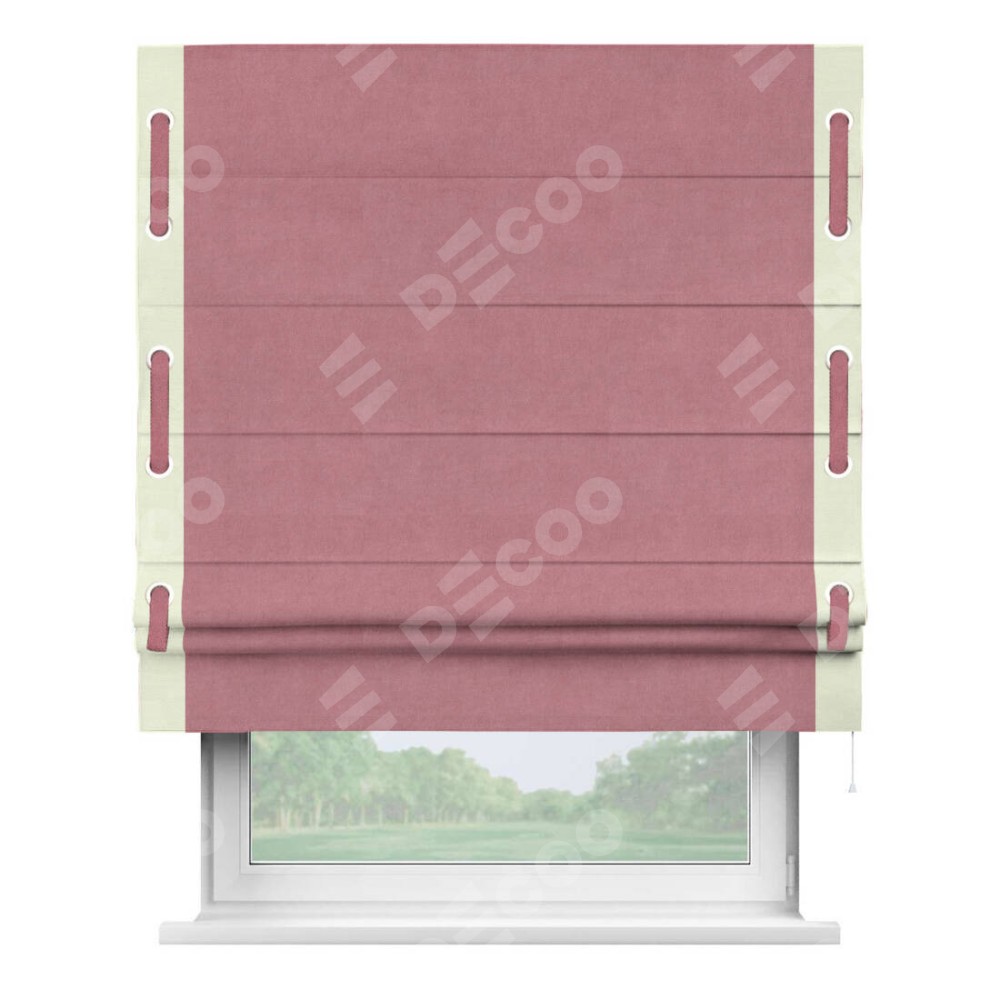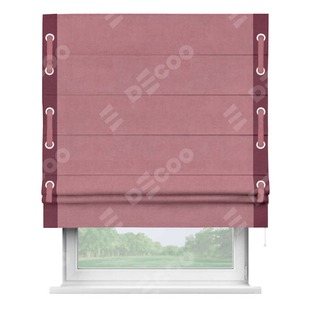 Римская штора «Кортин» с кантом Стрим Дуо (люверсы с пояском), для проема, ткань вельвет брусника
