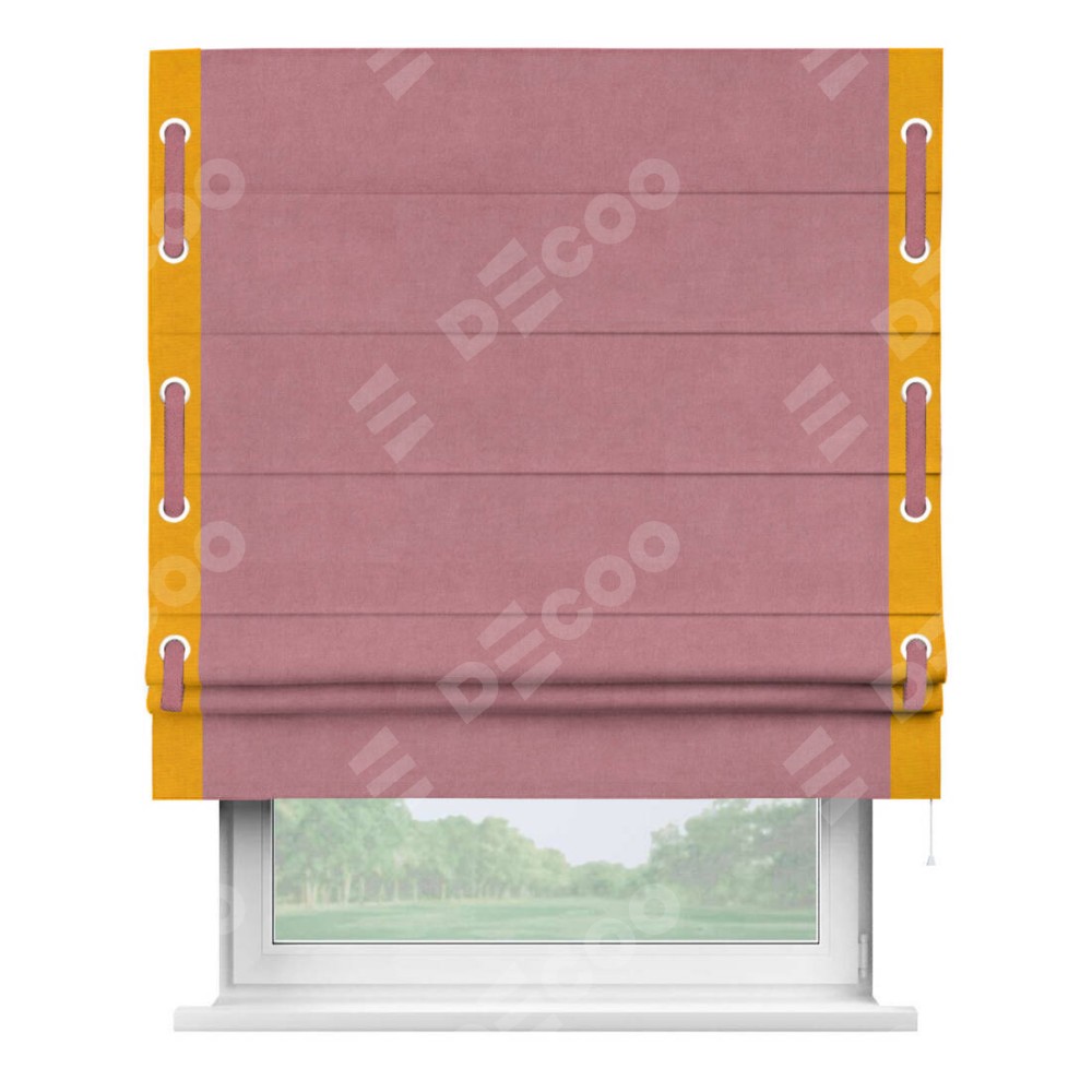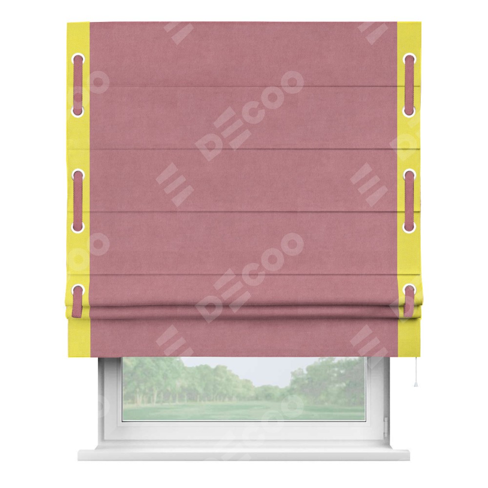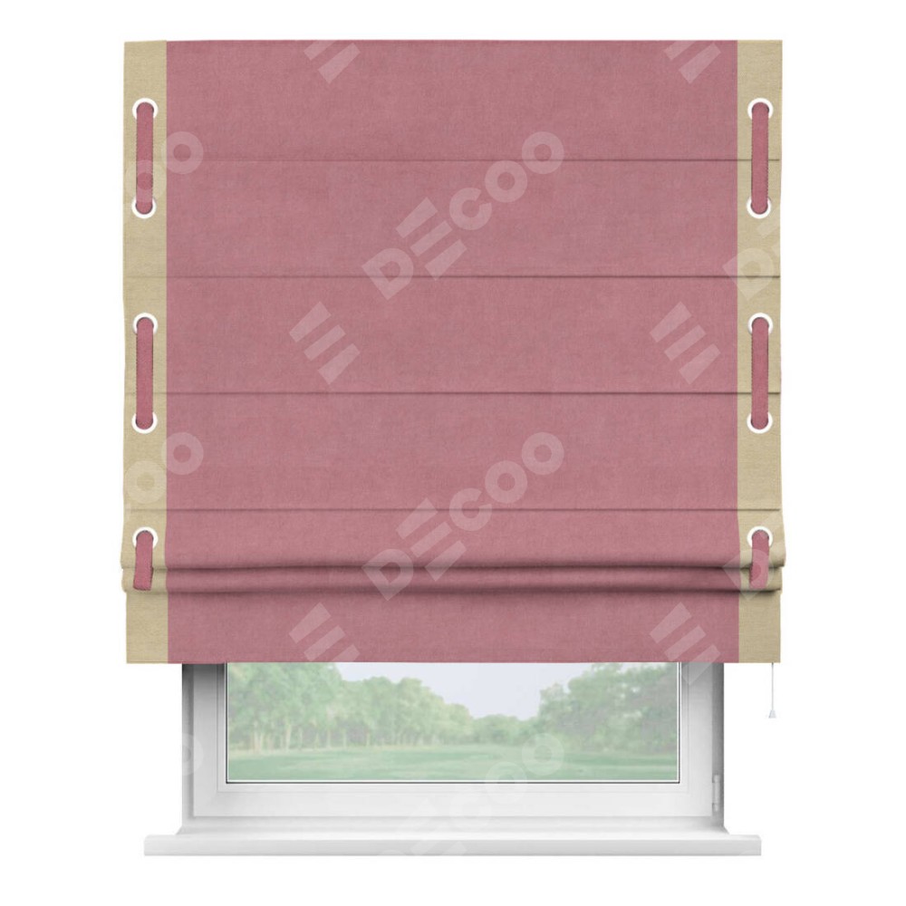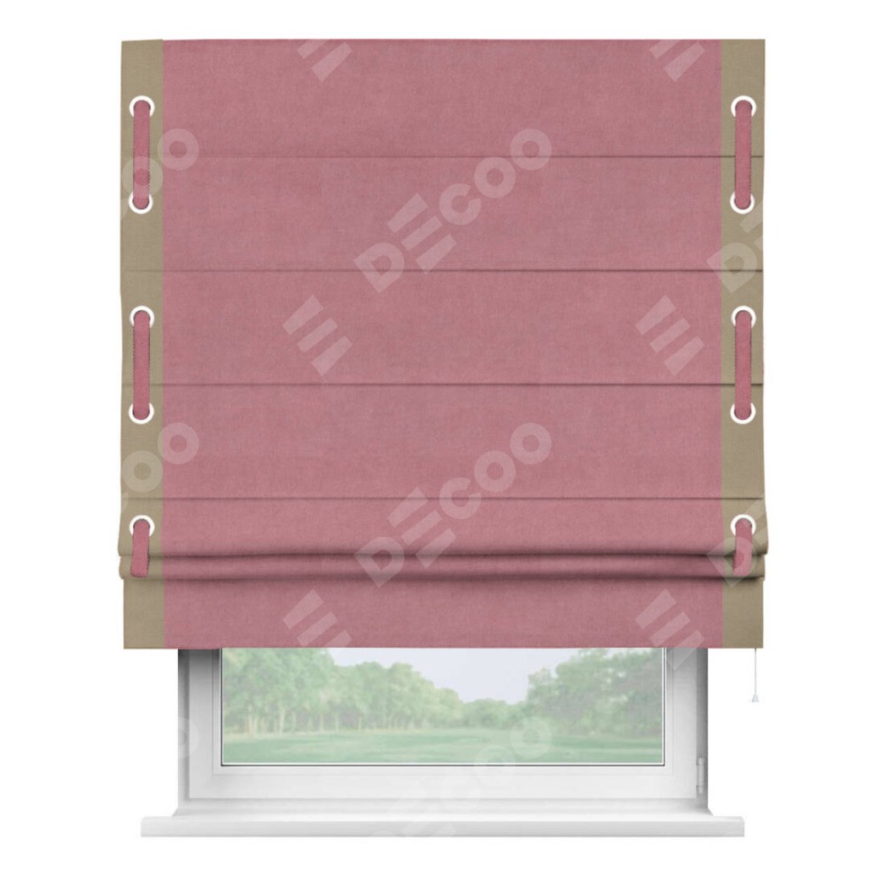 Римская штора «Кортин» с кантом Стрим Дуо (люверсы с пояском), для проема, ткань вельвет брусника