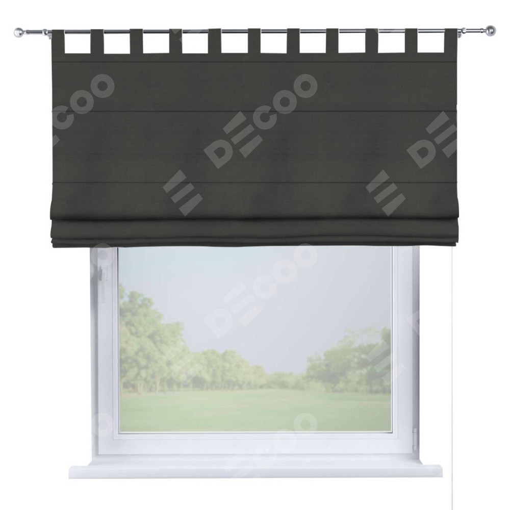 Римская штора производителя «Cortin», используется для проёма, пошита из ткани бархат серый, артикул ткани 5024. Данная модель пошита на петлях, комплектуется на выбор круглым карнизом и подходит для монтажа на стену. Римская штора на петлях имеет простую систему регулировки высоты, отличительным преимуществом данной модели является простой способ монтажа. Достаточно повесить ее на трубу и штора готова!