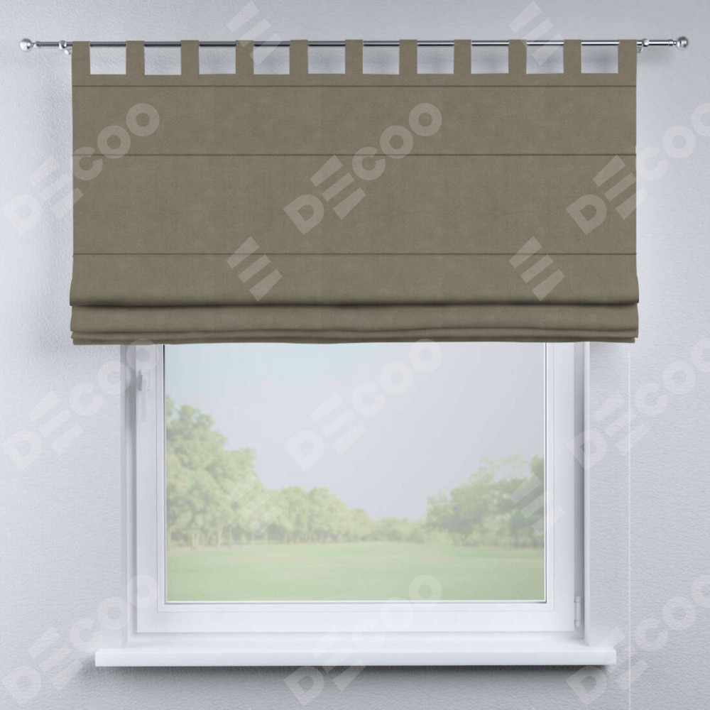 Римская штора производителя «Cortin», используется для проёма, пошита из ткани бархат ария, артикул ткани 31. Данная модель пошита на петлях, комплектуется на выбор круглым карнизом и подходит для монтажа на стену. Римская штора на петлях имеет простую систему регулировки высоты, отличительным преимуществом данной модели является простой способ монтажа. Достаточно повесить ее на трубу и штора готова!