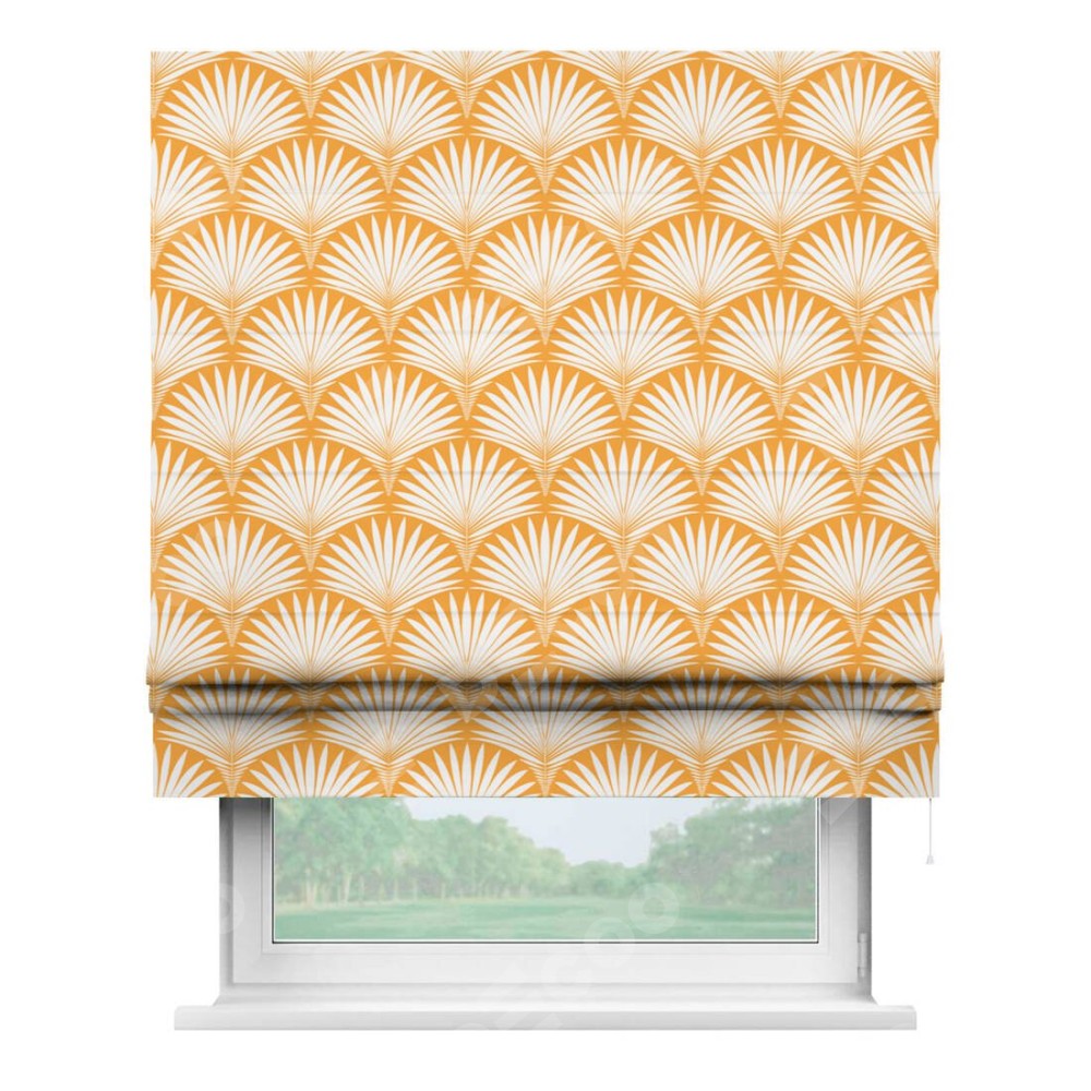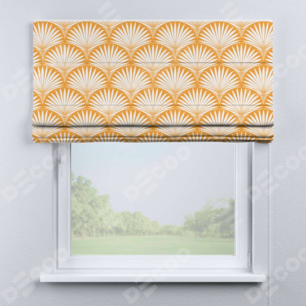 Римская штора «Кортин» для проема «Арт-деко листья желтый» предоставлена в следующих характеристиках: