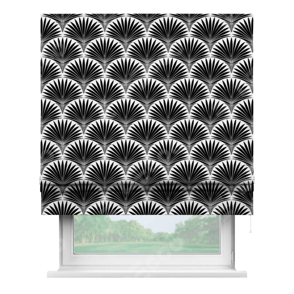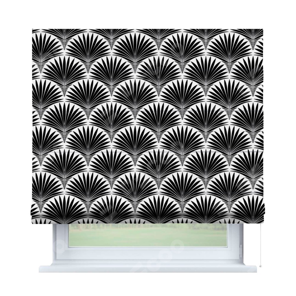 Римская штора «Кортин» для проема «Арт-деко листья черный»