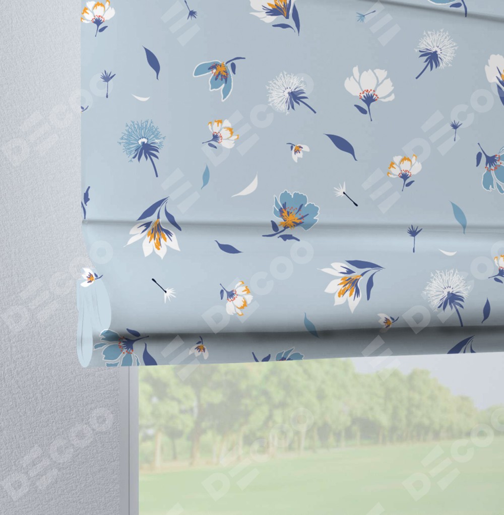 Римская штора производителя «Cortin», используется для проёма, пошита из ткани блэкаут с нанесением сублимационной печати «Голубые цветы». Данная модель пошита на петлях, комплектуется на выбор круглым карнизом и подходит для монтажа на стену. Римская штора на петлях имеет простую систему регулировки высоты, отличительным преимуществом данной модели является простой способ монтажа. Достаточно повесить ее на трубу и штора готова!