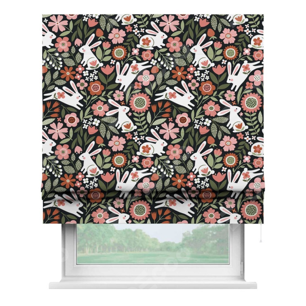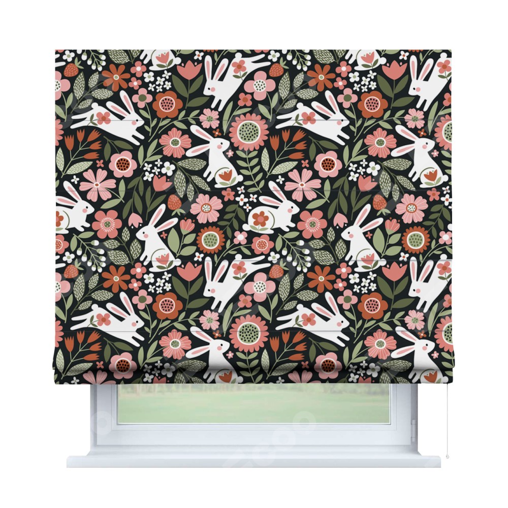 Римская штора «Кортин» для проема «Зайчики в цветнике»