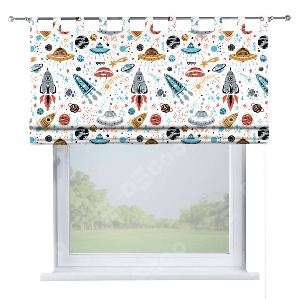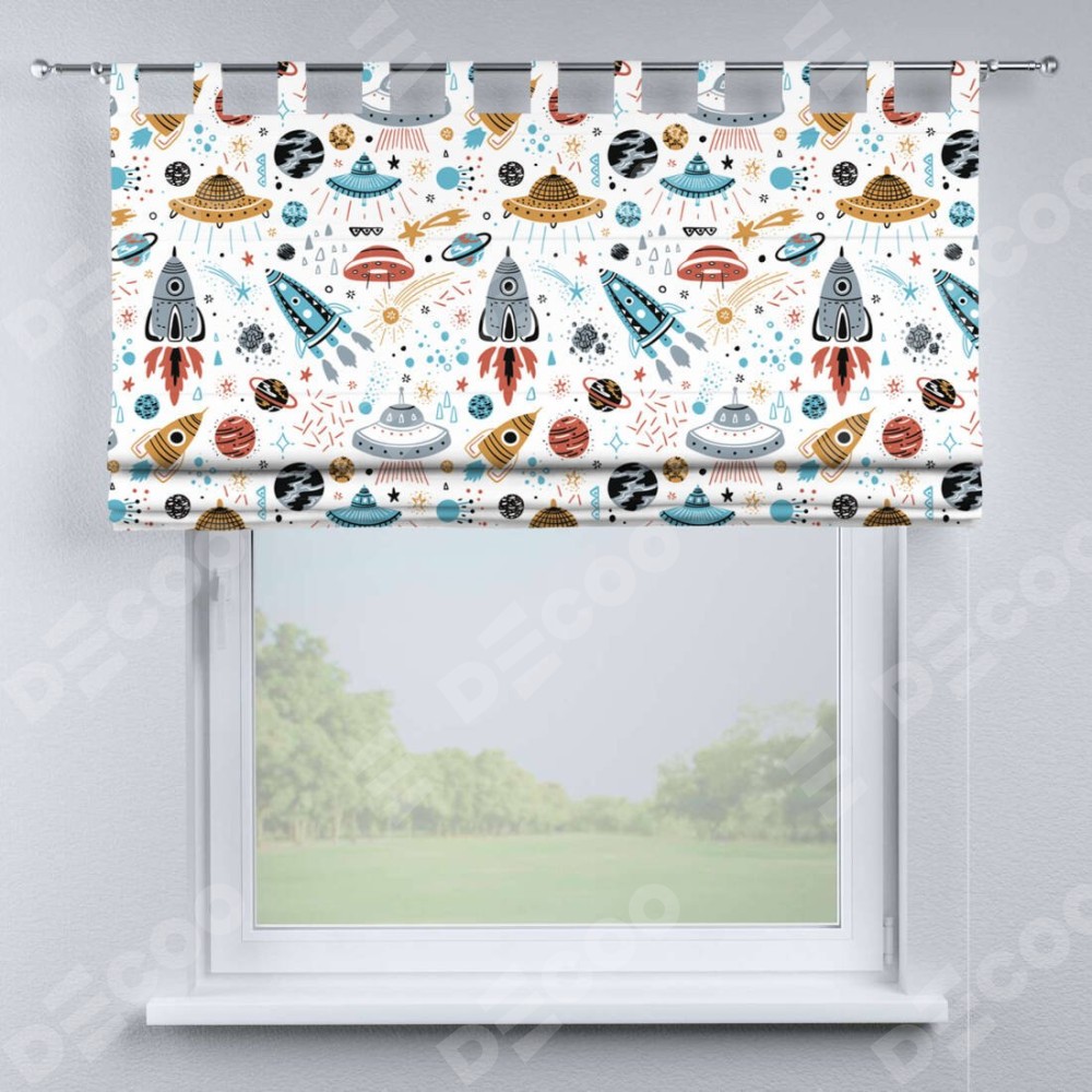 Римская штора производителя «Cortin», используется для проёма, пошита из ткани блэкаут с нанесением сублимационной печати «Космическое приключение». Данная модель пошита на петлях, комплектуется на выбор круглым карнизом и подходит для монтажа на стену. Римская штора на петлях имеет простую систему регулировки высоты, отличительным преимуществом данной модели является простой способ монтажа. Достаточно повесить ее на трубу и штора готова!