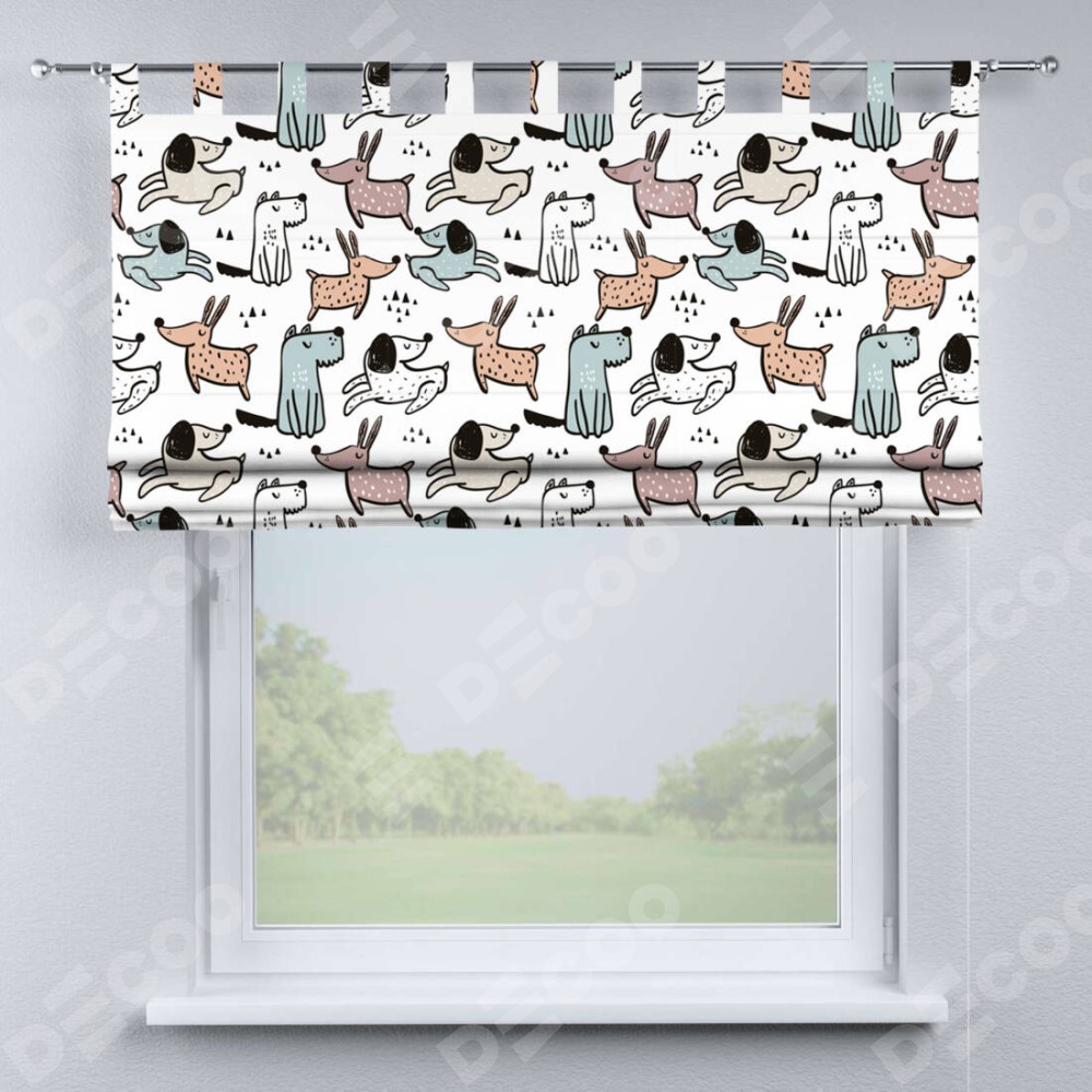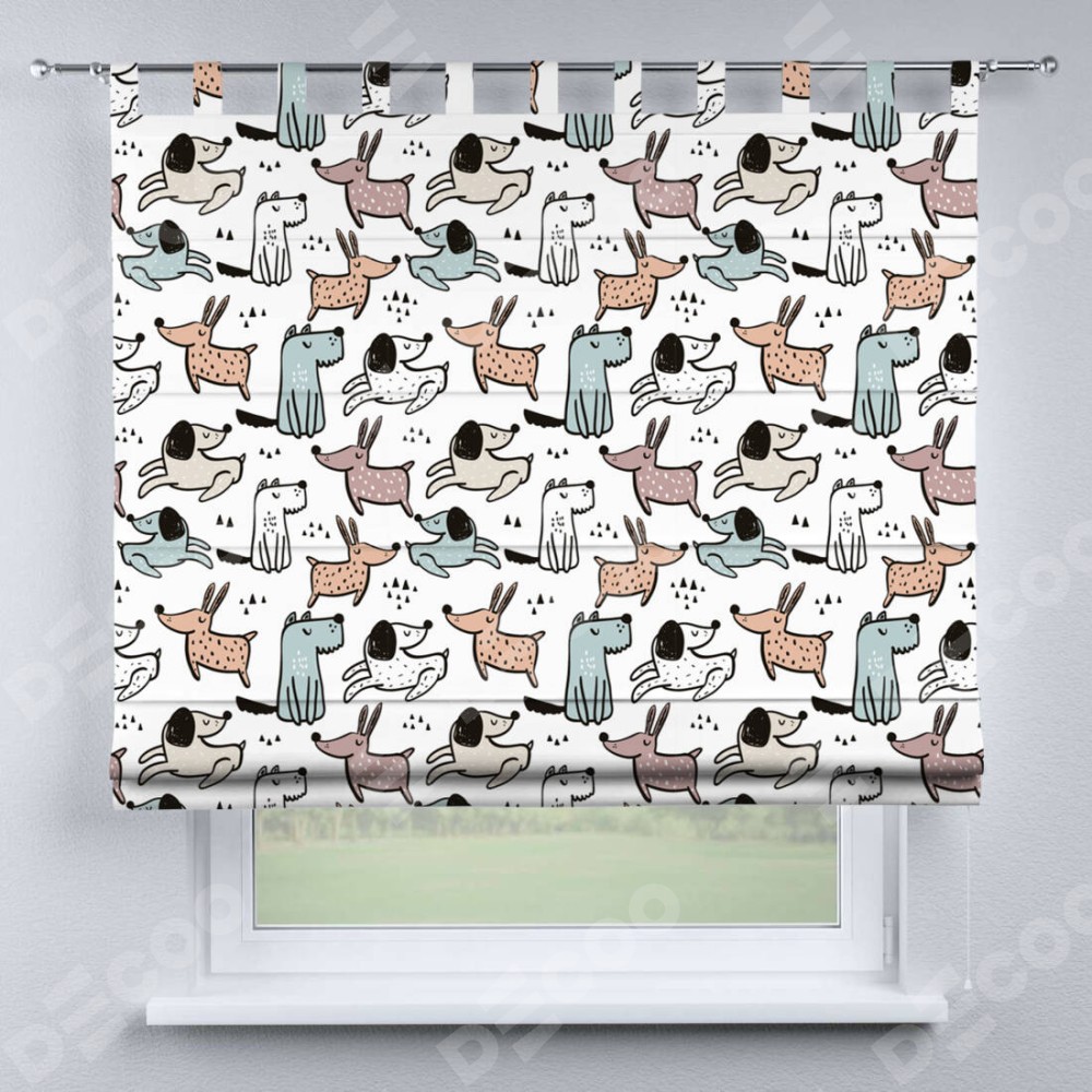 Римская штора производителя «Cortin», используется для проёма, пошита из ткани блэкаут с нанесением сублимационной печати «Очаровательные щеночки». Данная модель пошита на петлях, комплектуется на выбор круглым карнизом и подходит для монтажа на стену. Римская штора на петлях имеет простую систему регулировки высоты, отличительным преимуществом данной модели является простой способ монтажа. Достаточно повесить ее на трубу и штора готова!