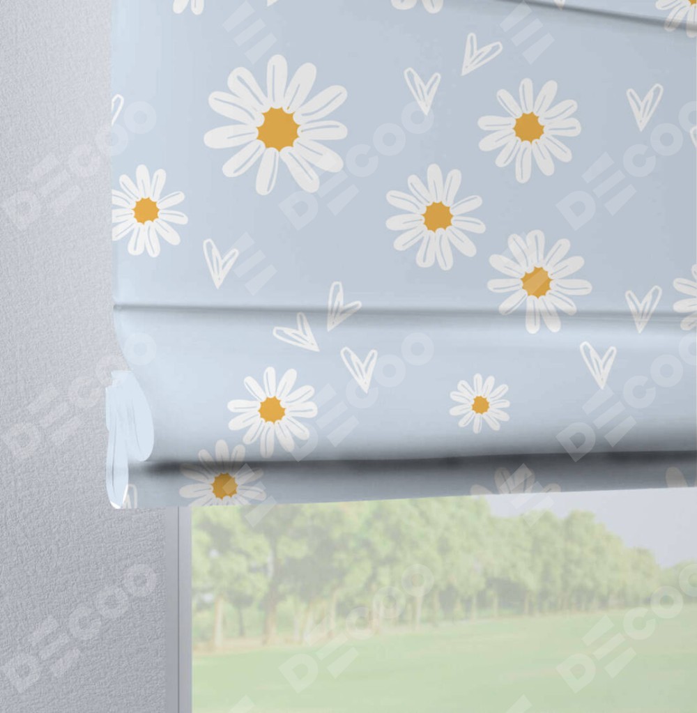 Римская штора на петлях «Летние ромашки» отлично подойдёт для интерьера:.