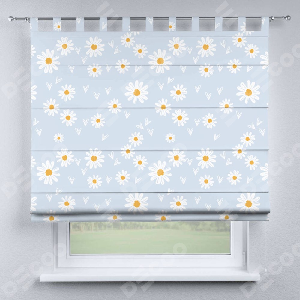 Римская штора на петлях «Летние ромашки» предоставлена в следующих характеристиках: