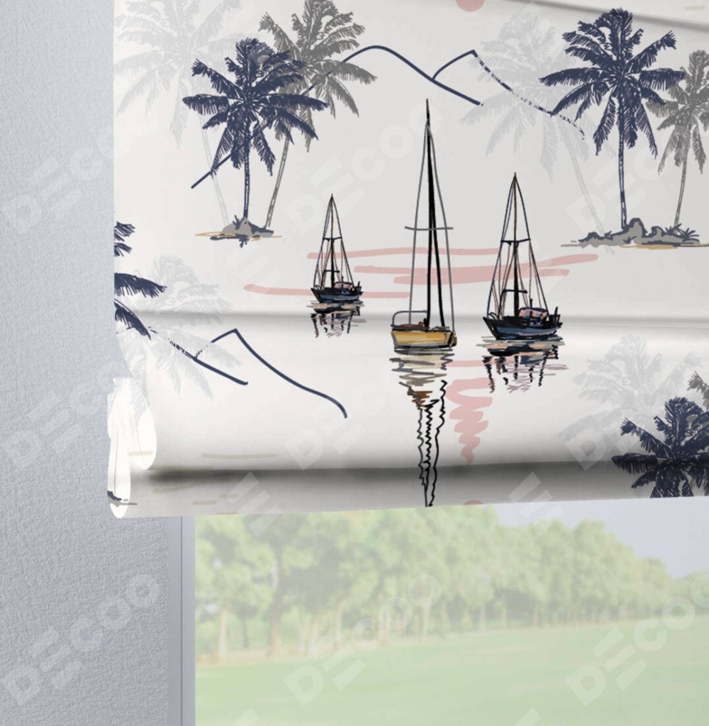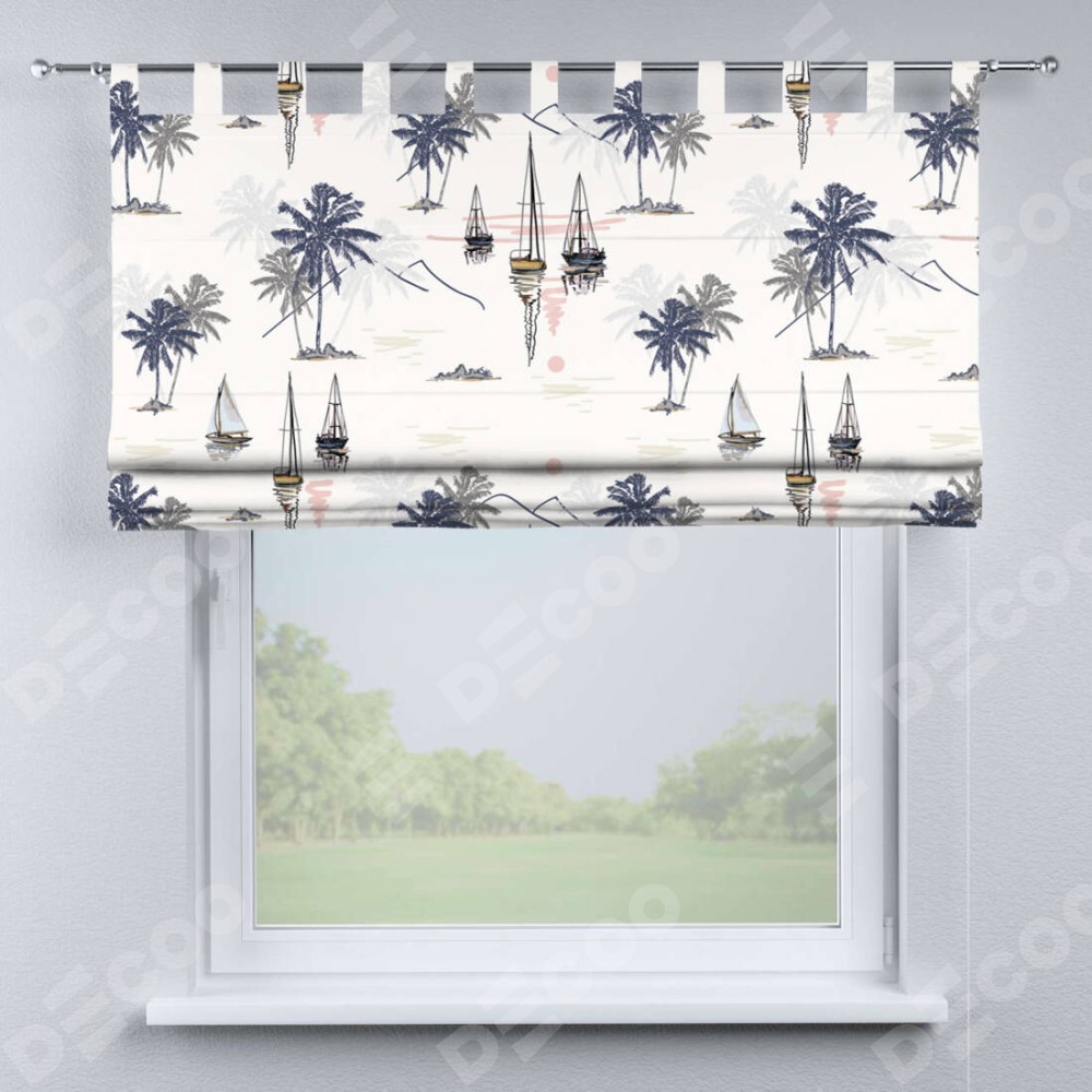 Римская штора производителя «Cortin», используется для проёма, пошита из ткани блэкаут с нанесением сублимационной печати «Морское путешествие». Данная модель пошита на петлях, комплектуется на выбор круглым карнизом и подходит для монтажа на стену. Римская штора на петлях имеет простую систему регулировки высоты, отличительным преимуществом данной модели является простой способ монтажа. Достаточно повесить ее на трубу и штора готова!