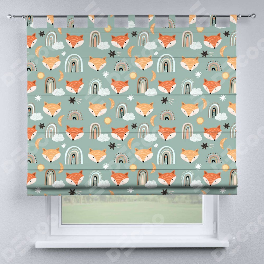 Римская штора на петлях «Озорные лисички» предоставлена в следующих характеристиках: