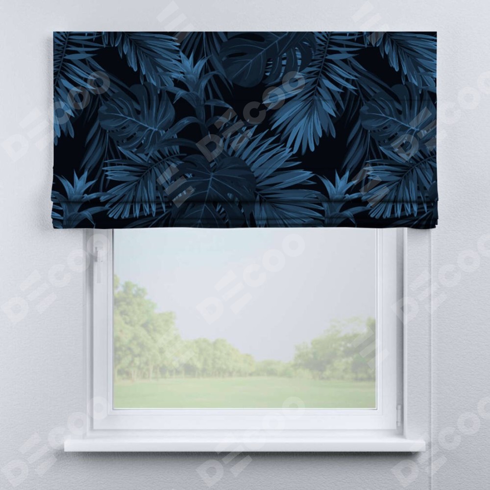 Римская штора производителя «Cortin», используется для проёма, пошита из ткани блэкаут с нанесением сублимационной печати «Ночные джунгли». Имеет универсальный механизм и подходит для монтажа: на потолок, на стену и в нишу.