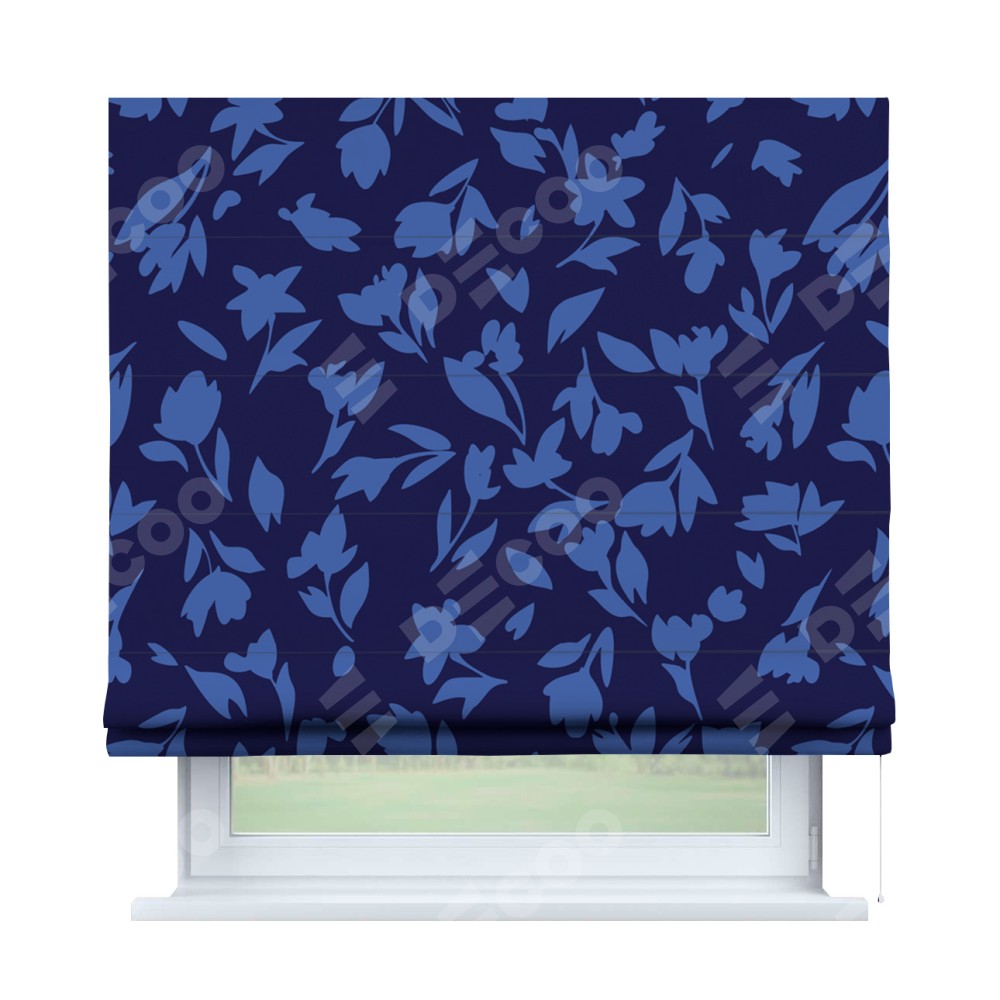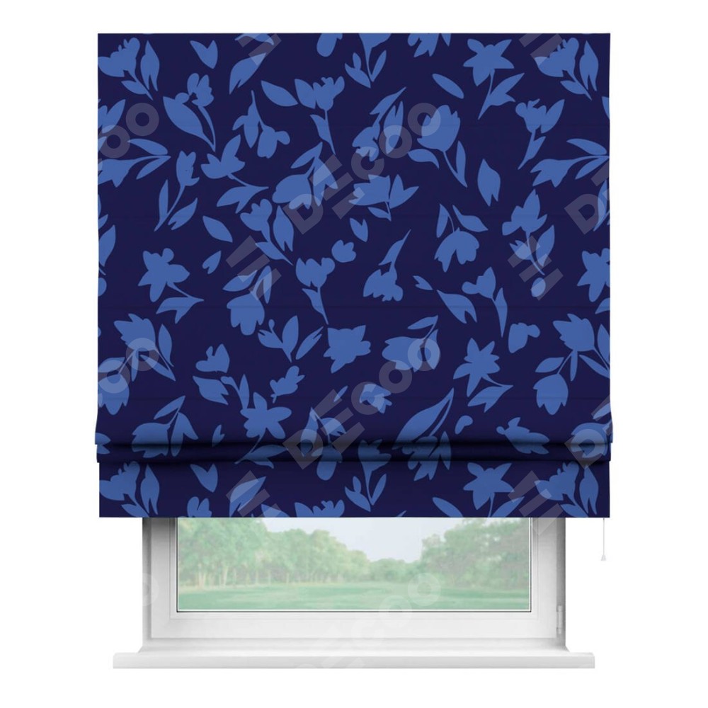 Римская штора «Кортин» для проема «Синие цветы» предоставлена в следующих характеристиках: