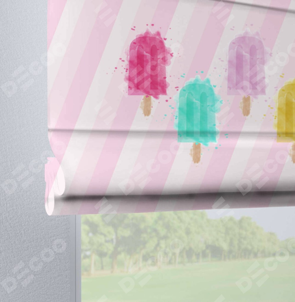 Римская штора на петлях «Фруктовое мороженое» предоставлена в следующих характеристиках: