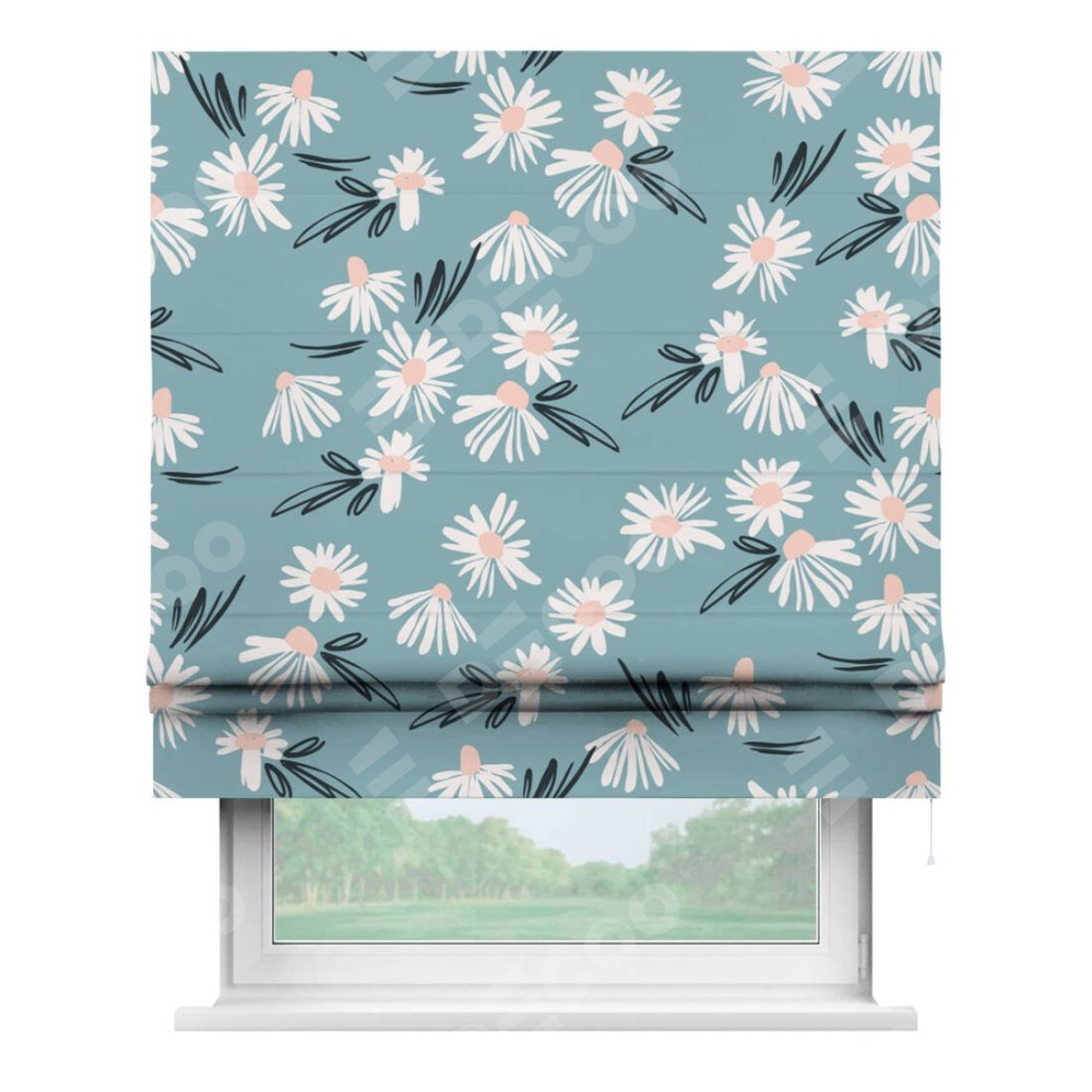 Римская штора «Кортин» для проема «Чудесные ромашки» предоставлена в следующих характеристиках:
