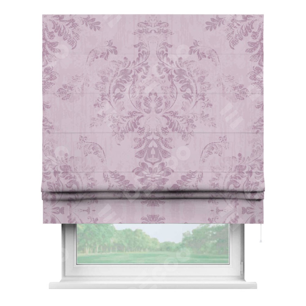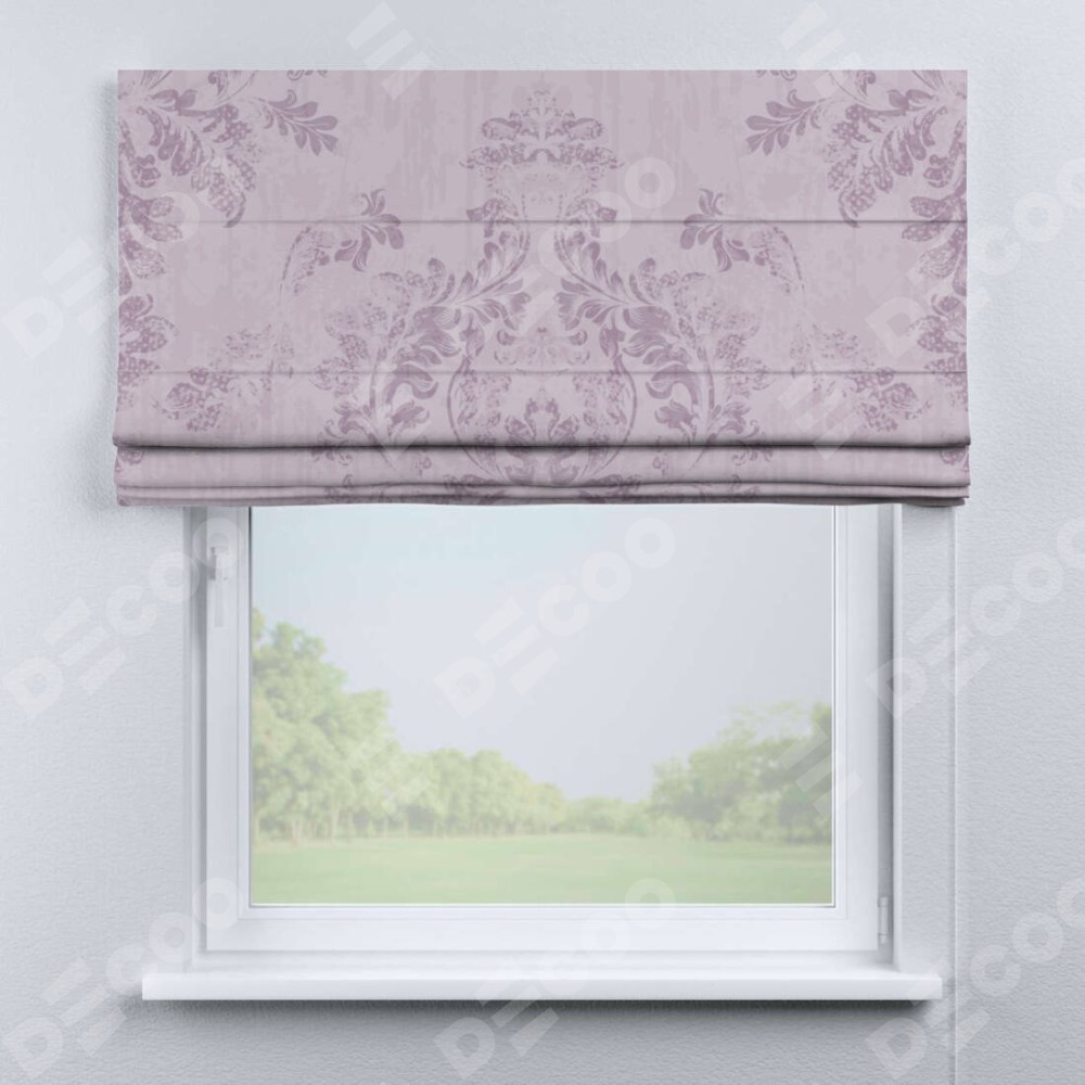 Римская штора «Кортин» для проема «Винтажный узор сиреневый» предоставлена в следующих характеристиках: