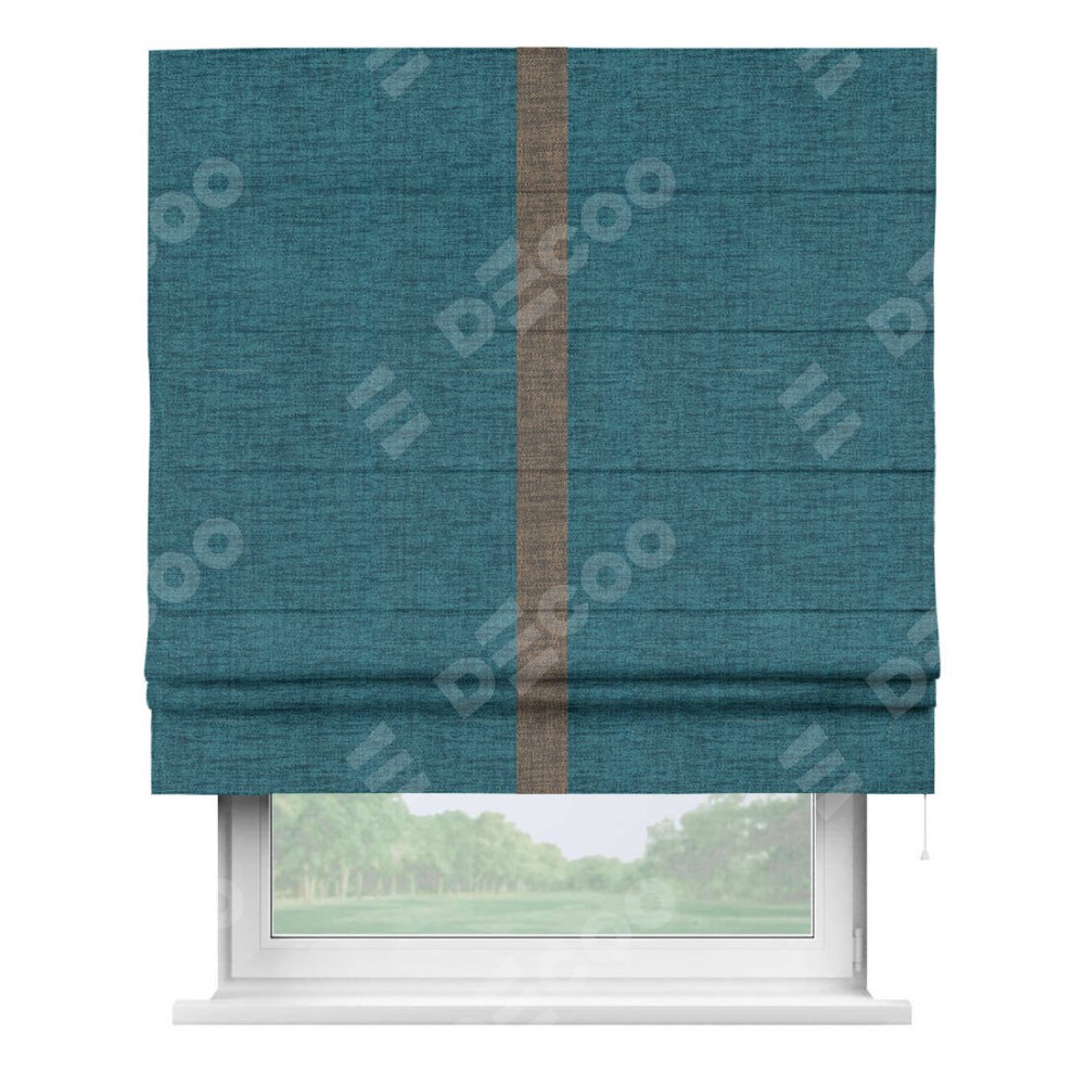Римская штора «Кортин» с кантом Хайвэй, для проема, ткань рогожка димаут, синий