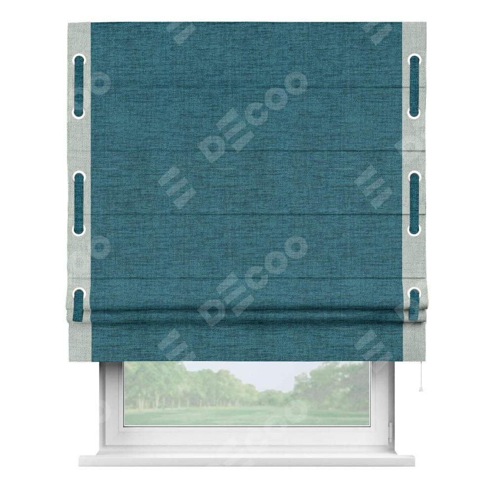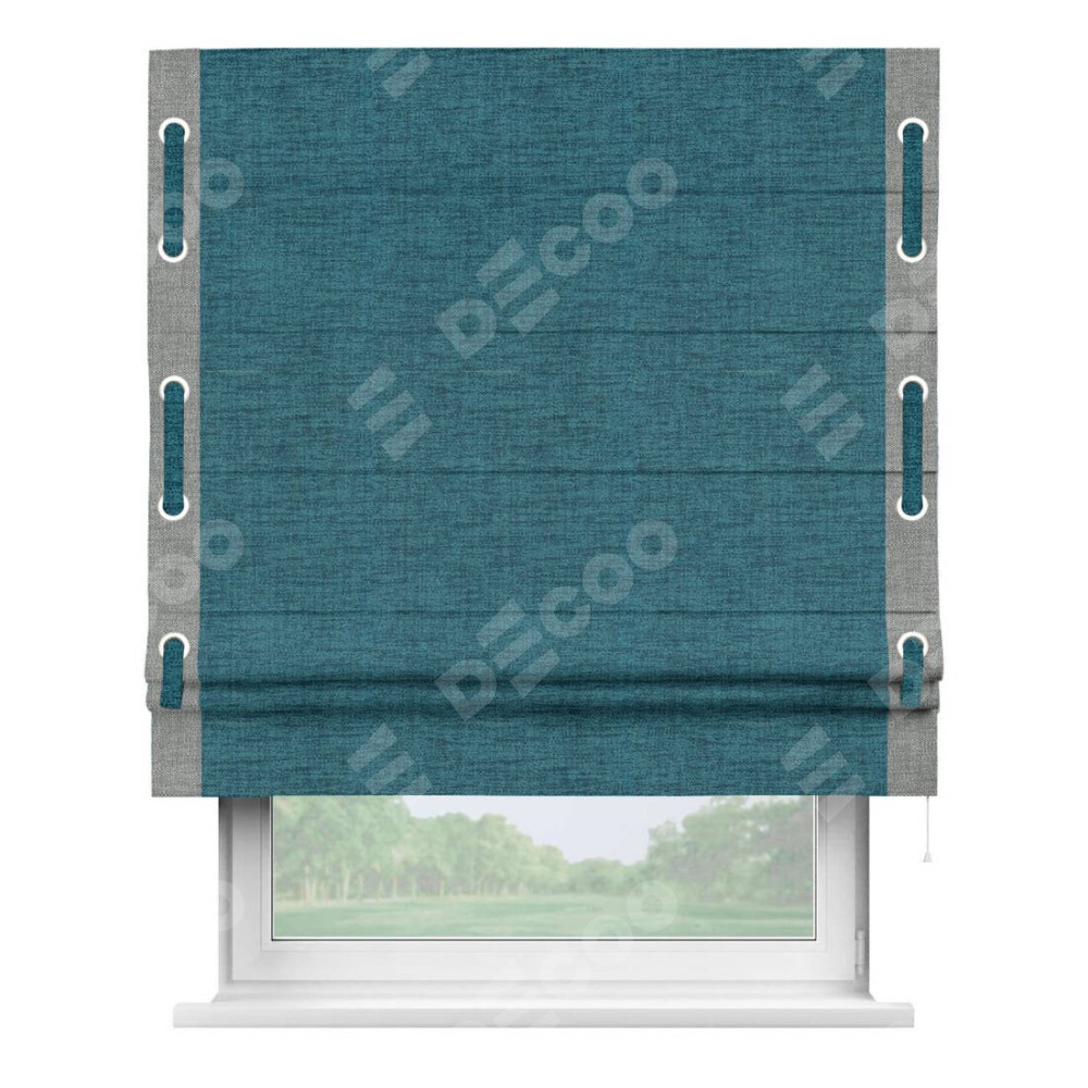 Римская штора «Кортин» с кантом Стрим Дуо (люверсы с пояском), для проема, ткань рогожка димаут, синий