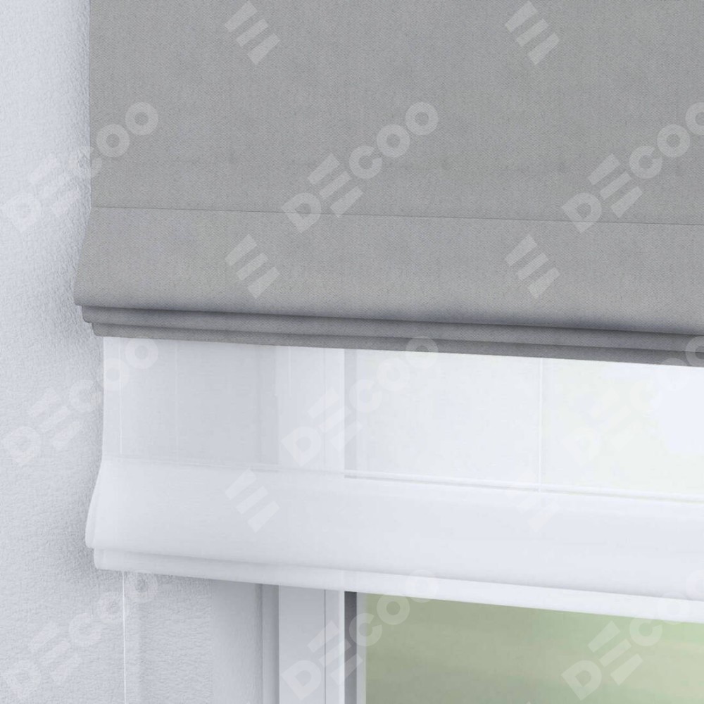 Римская штора день-ночь производителя «Cortin», используется для проёма, пошита из двух полотен, с лицевой стороны блэкаут с блеском тёмно-серый артикул 34634, вторая ткань тюль (по стандарту комплектуется тюль белого цвета артикул V-01). Изнаночная сторона основного материала черного цвета, что обеспечивает необходимую светонепроницаемость. Имеет универсальный механизм и подходит для монтажа: на потолок, на стену и в нишу.