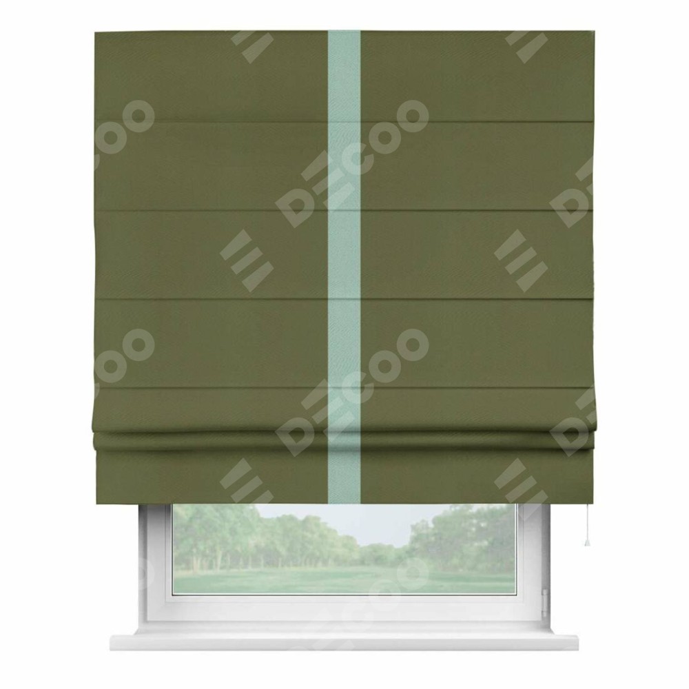 Римская штора «Кортин» с кантом Хайвэй, для проема, ткань блэкаут однотонный зелёный