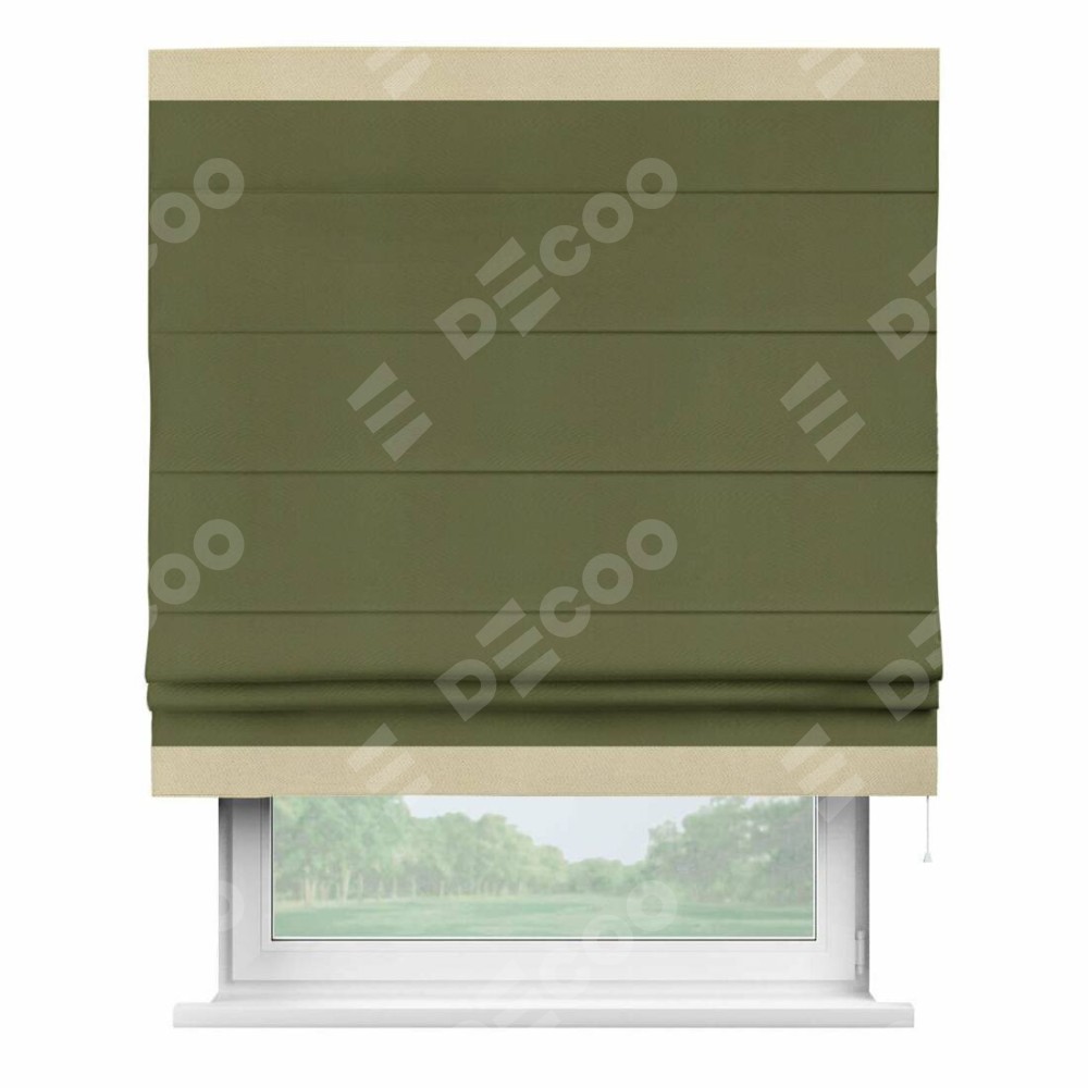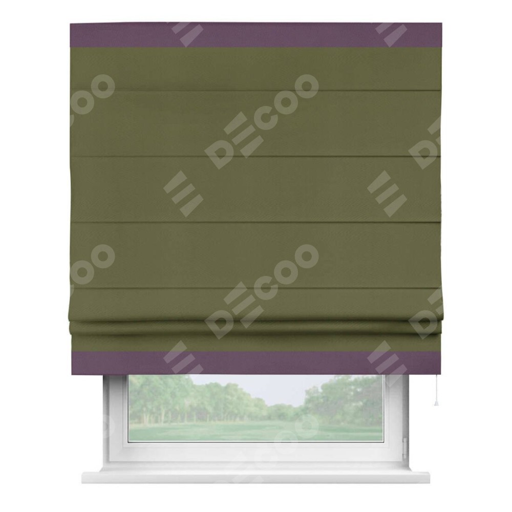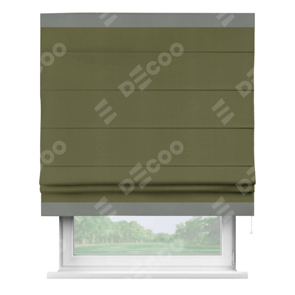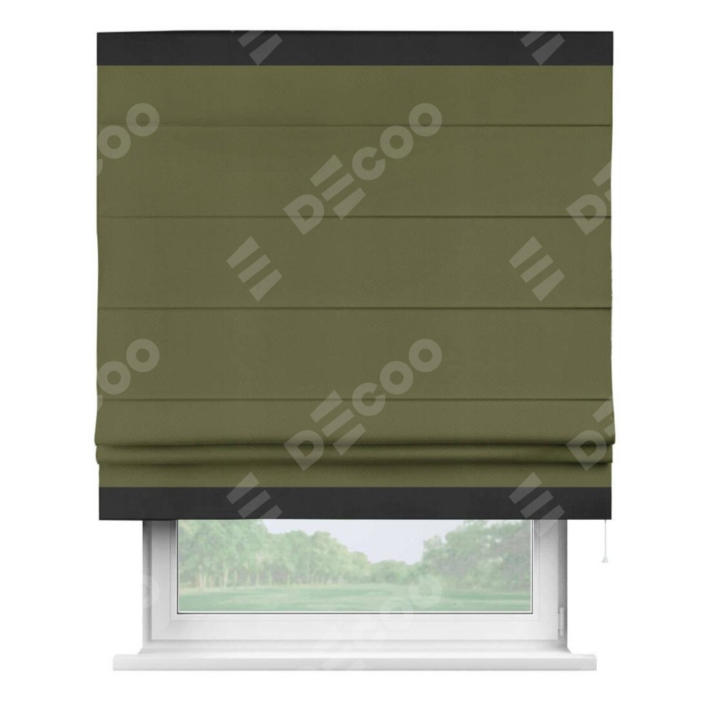 Римская штора «Кортин» с кантом Горизонт, для проема, ткань блэкаут однотонный зелёный