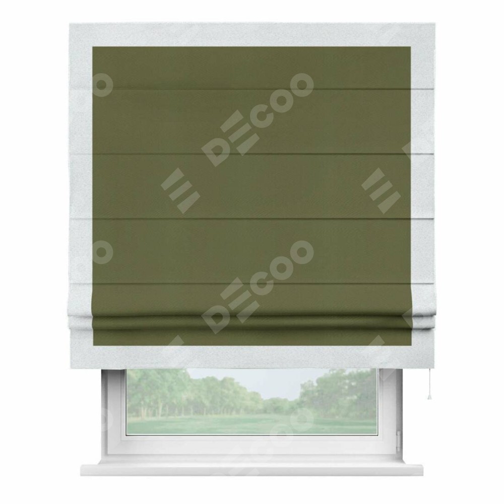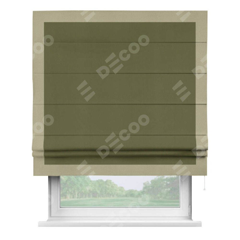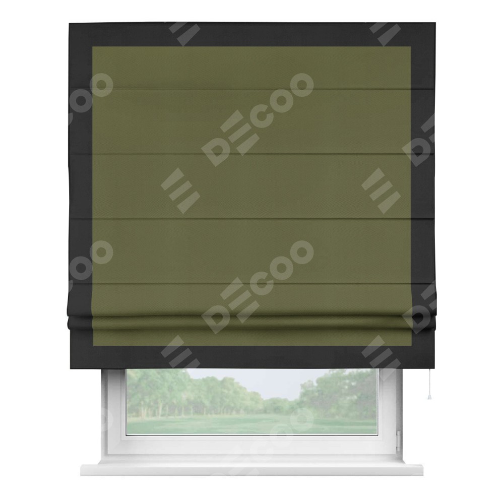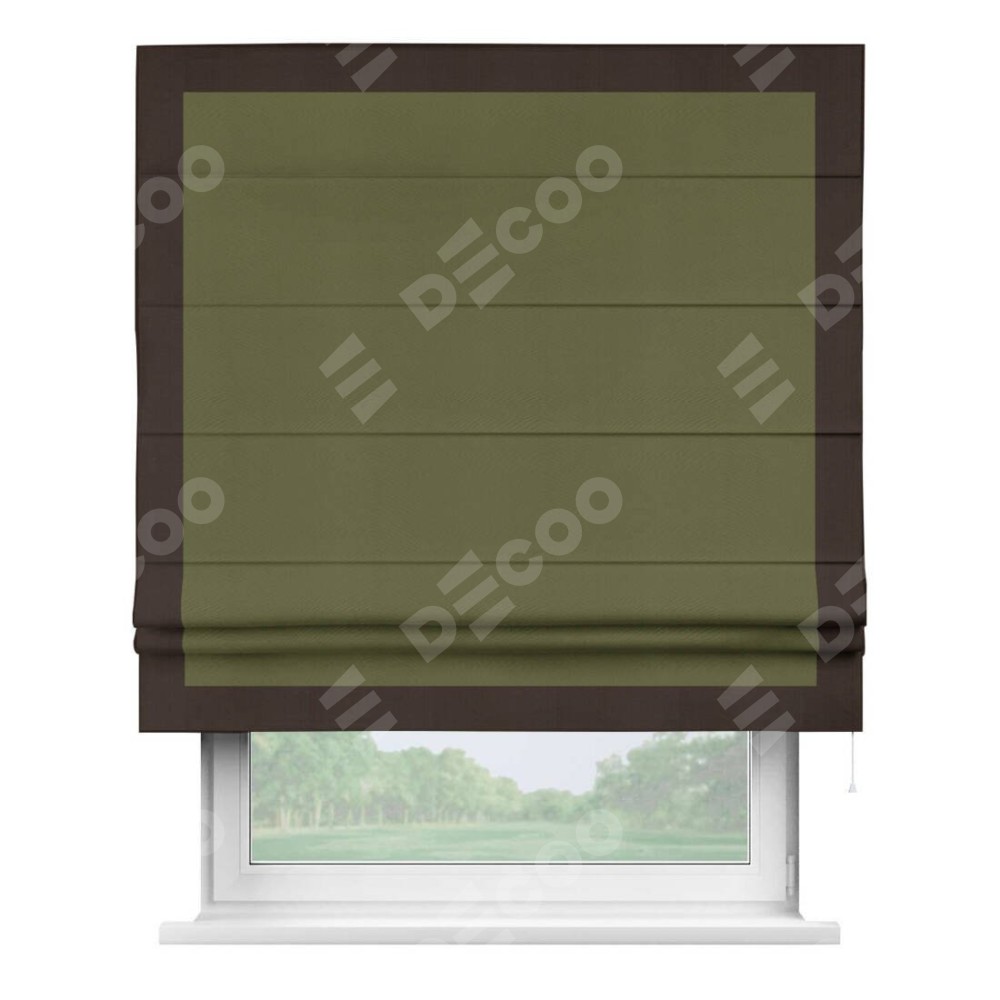 Римская штора «Кортин» с кантом Чесс, для проема, ткань блэкаут однотонный зелёный