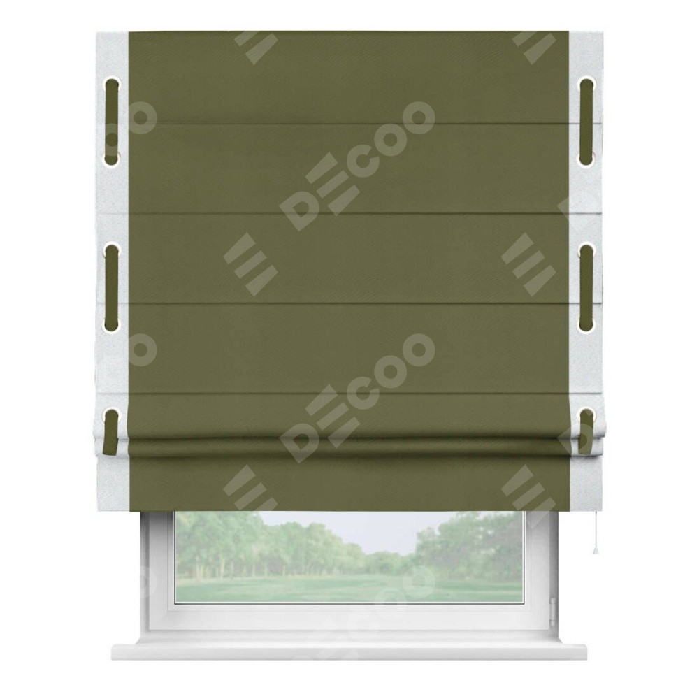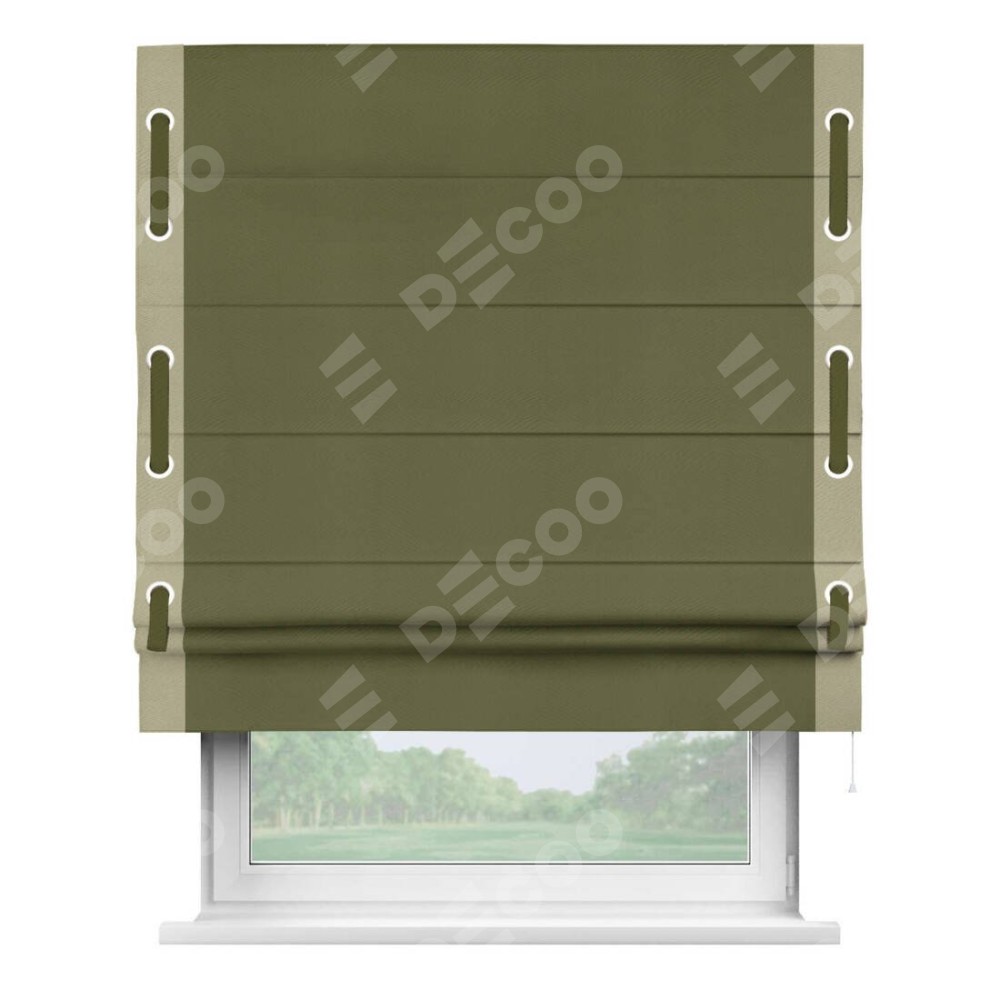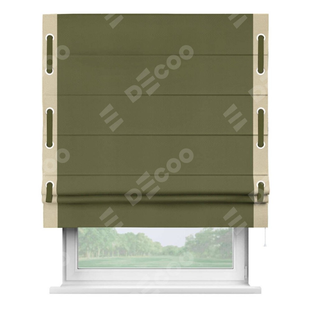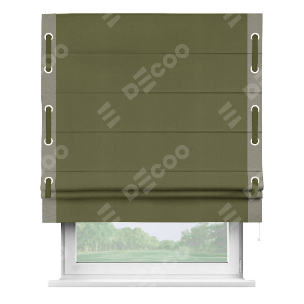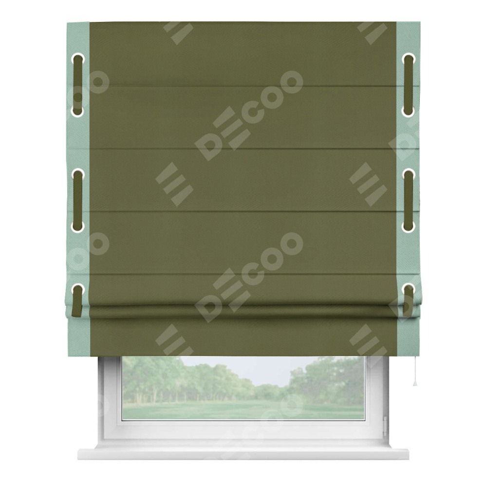 Римская штора «Кортин» с кантом Стрим Дуо (люверсы с пояском), для проема, ткань блэкаут однотонный зелёный