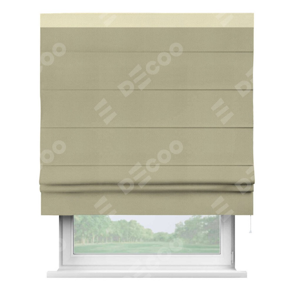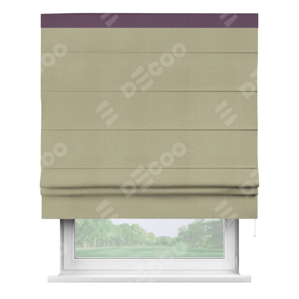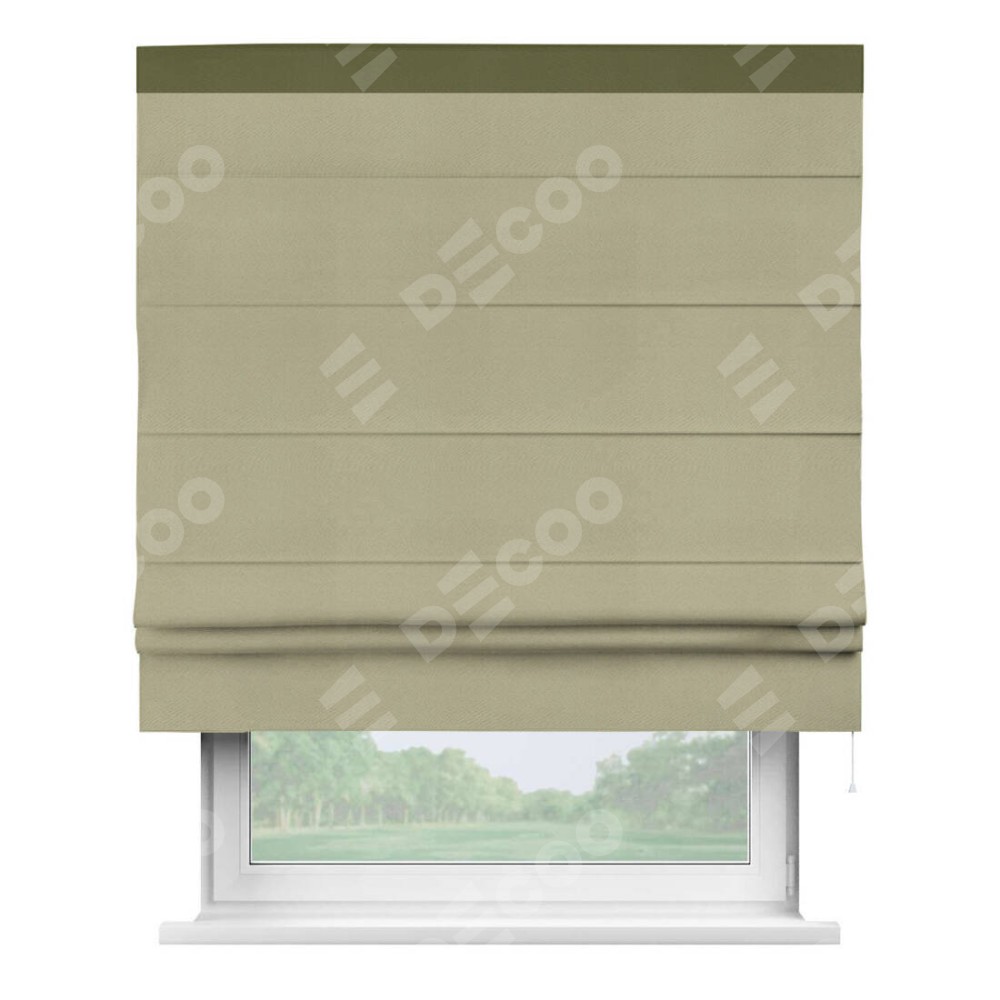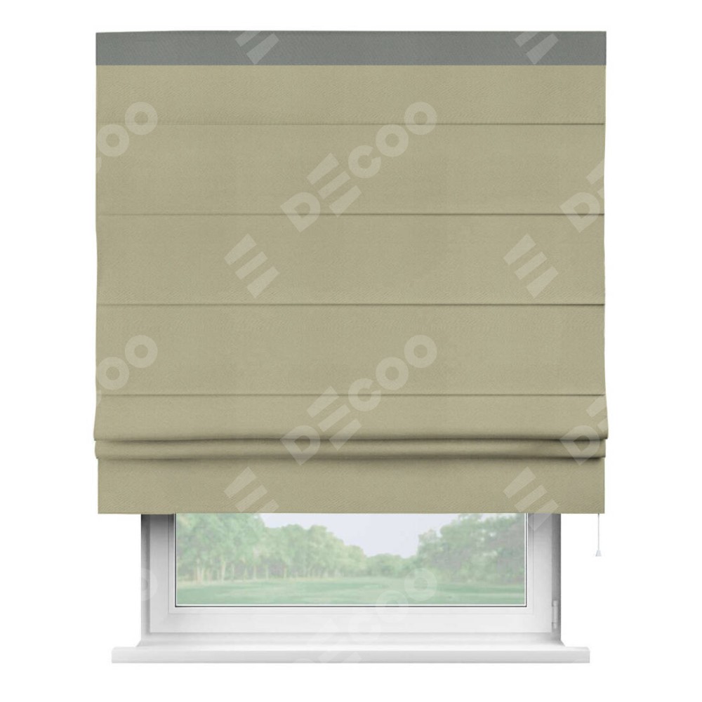 Римская штора производителя «Cortin», используется для проёма, пошита из ткани блэкаут однотонный милано капучино, артикул ткани 06. Отделка шторы кантом «Кинг», ткань для канта используется из блэкаута однотонного разной расцветки на выбор. Имеет универсальный механизм и подходит для монтажа: на потолок, на стену и в нишу.