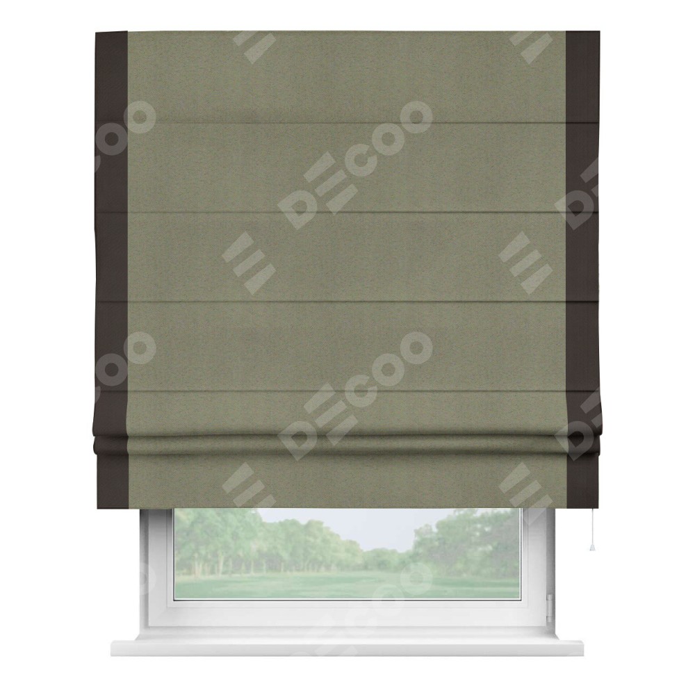 Римская штора «Кортин» с кантом Стрим Дуо, для проема, ткань блэкаут однотонный серо-коричневый