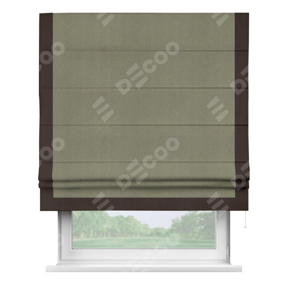Римская штора «Кортин» с кантом Виктория, для проема, ткань блэкаут однотонный серо-коричневый